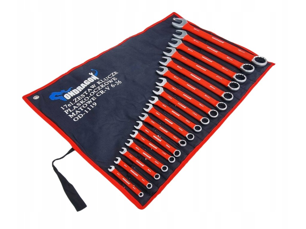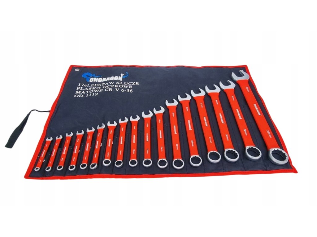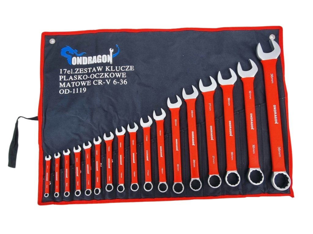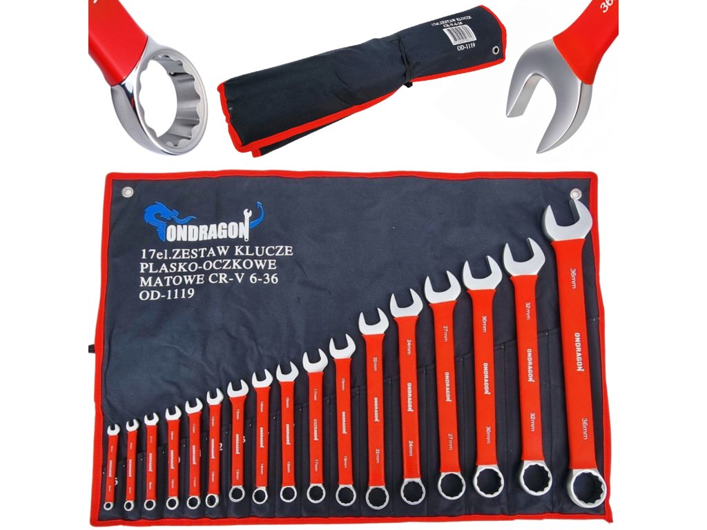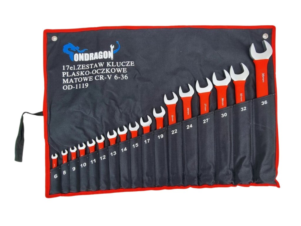 - 17 бр. плоски и звездогаечни ключове (6–36 мм)