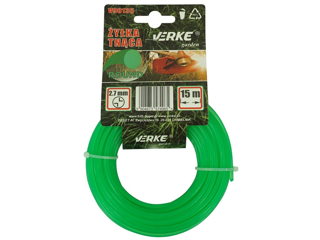 Корда за косачка кръгла 2,7 мм 15 м VERKE GARDEN V90135 се отличава с отлично представяне при косене при всякакви условия. Изключително здравото ядро на режещата корда гарантира винаги гладка и равномерна повърхност след косене. Благодарение на отличните си аеродинамични характеристики, кордата работи много тихо.