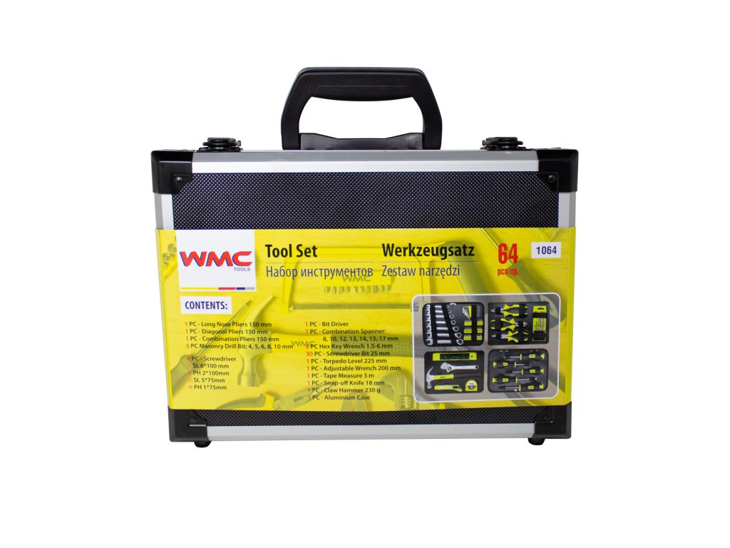 Цялостен комплект от 64 части инструменти, съхранявани в практична кутия – идеален подарък за майстори и домашна употреба. Здравата конструкция на инструментите и ясното подреждане в кутията осигуряват лесен достъп и безопасно съхранение.
