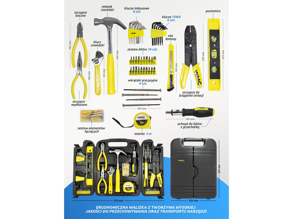 WMC Tools се основава на надеждност и универсалност. Техните инструменти са идеални не само за работилници и строителни площадки, но и за домашни проекти и поддръжка. Благодарение на отличното съотношение цена-качество, марката се превърна в популярен избор на европейския пазар, а нейните продукти се използват широко от професионалисти и аматьори по целия свят.