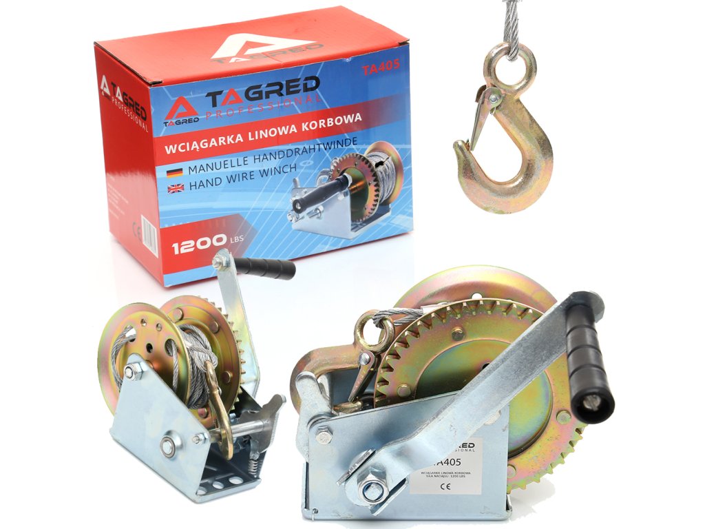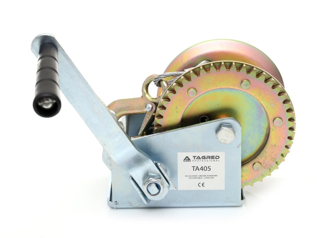 Ръчна лебедка с въже TA405 е изработена от висококачествена конструкционна стомана, което гарантира дълъг живот и надеждност. Отлятото кука е оборудвана с обратна пружина, което улеснява употребата ѝ. Управлението на лебедката се осъществява чрез ръчна дръжка заедно с предпазен механизъм, който позволява безопасно повдигане и пускане на товари.