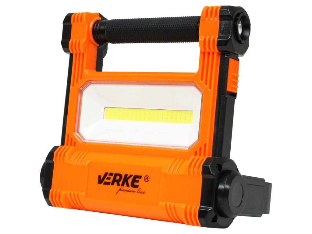Благодарение на използването на LED COB технология, лампата осигурява значително повече светлина в сравнение с традиционните източници и същевременно е много по-икономична. Прожекторът е предназначен за осветяване на работното място в работилница, на строителна площадка или в гараж. COB диод с мощност 20W генерира светлинен поток от 2000 лумена. Лампата е оборудвана с регулируем държач за статив с бутон за заключване на ъгъла на наклон. Продуктите на Verke се отличават на българския пазар с изключително качество и достоверни технически характеристики.