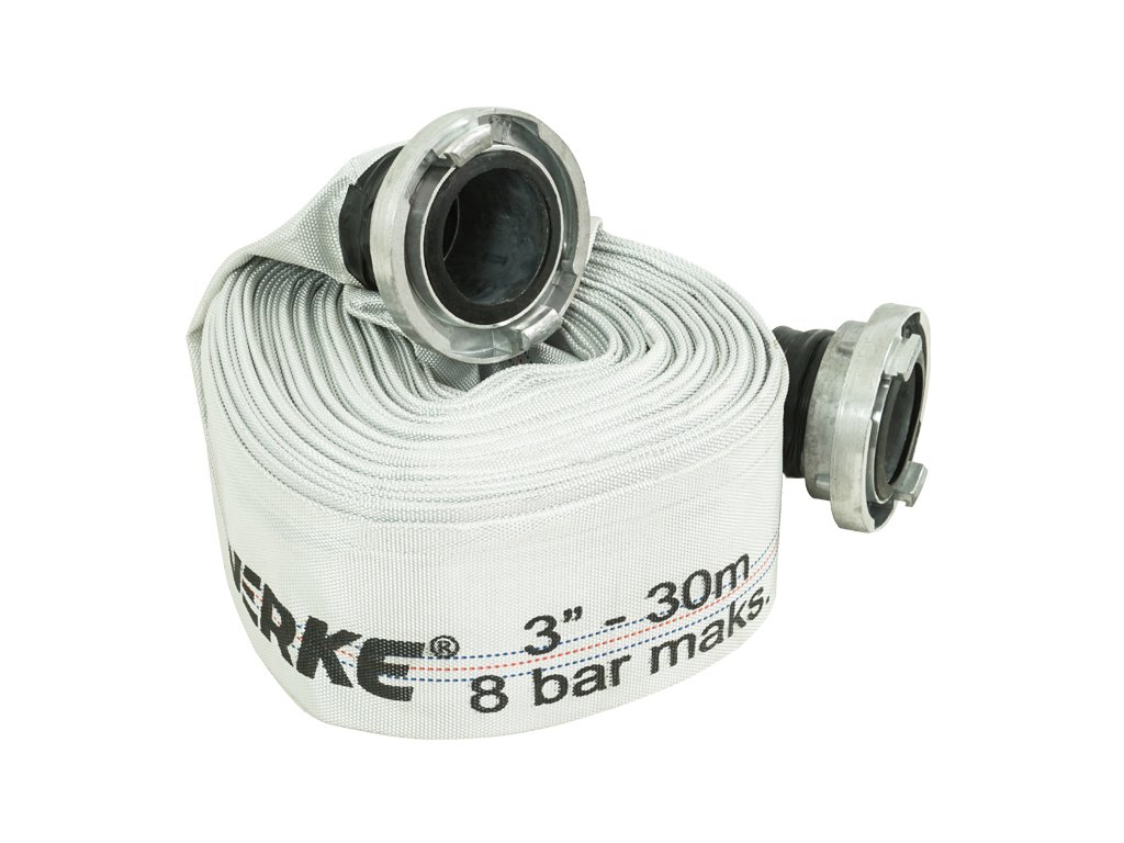 Маркучът за вода 3"x30m с бързи връзки VERKE V60142 е предназначен за употреба с електрически потопяеми помпи и бензинови помпи. С него можете да отвеждате излишната влага от помещения, както и да източвате чиста или замърсена вода. Продуктът е оборудван с практични бързи връзки, които осигуряват лесен и безпроблемен монтаж. Маркучът е изработен от бяла полиестерна лента, съчетана с вътрешна вложка в черен цвят. Тези маркучи са с висока устойчивост на температурни колебания и отлично се представят при работа в затруднени условия с огъвания.