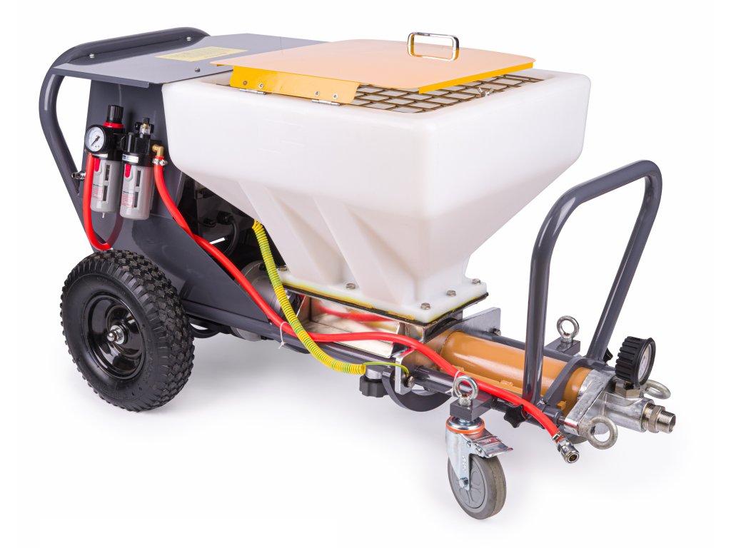 Здрав шнек за засмукване на материала, в комплект с метален резервоар и гайка за бързо изпразване на останалата мазилка и лесно почистване.