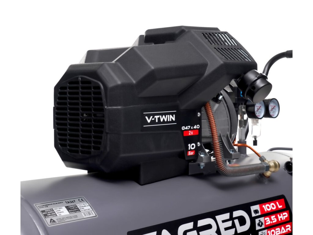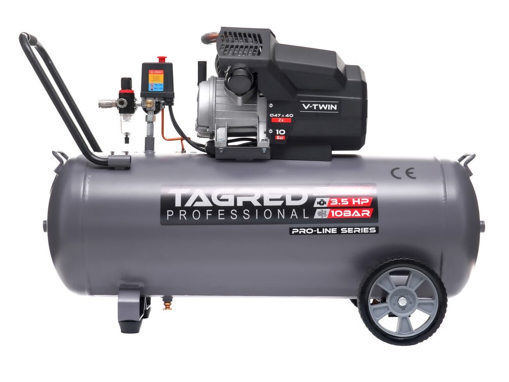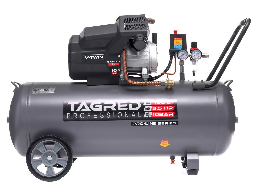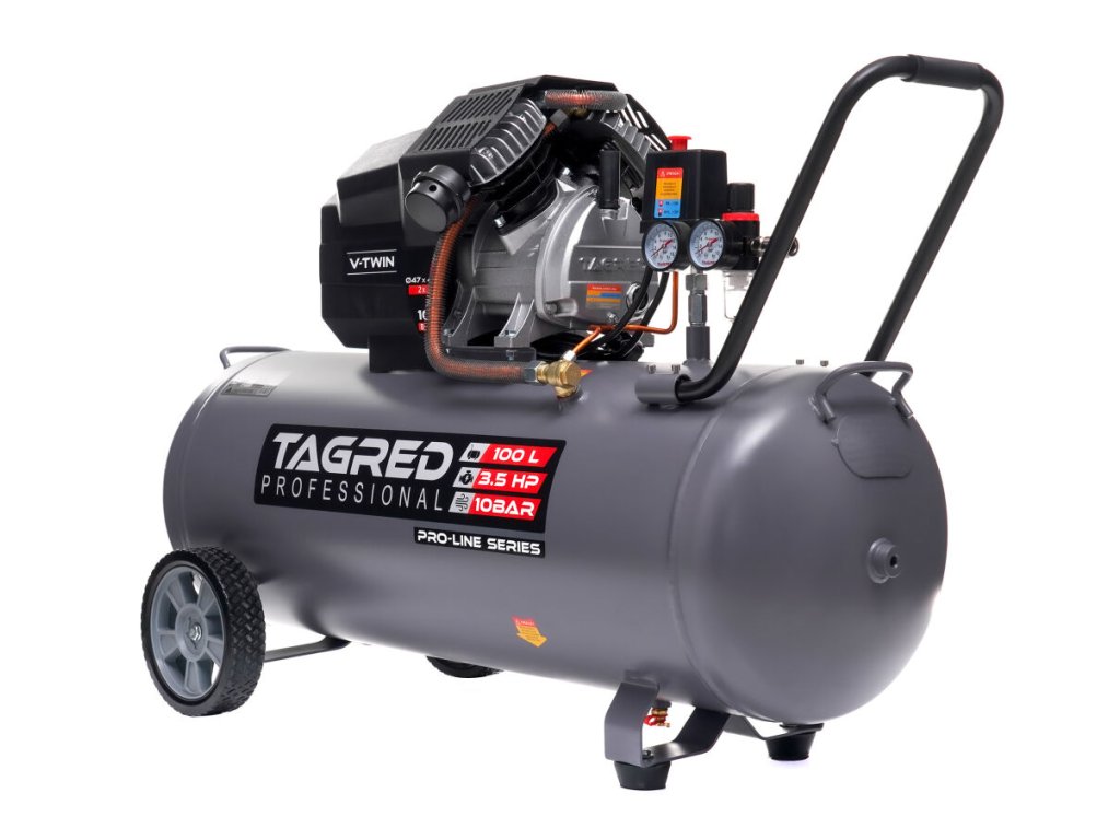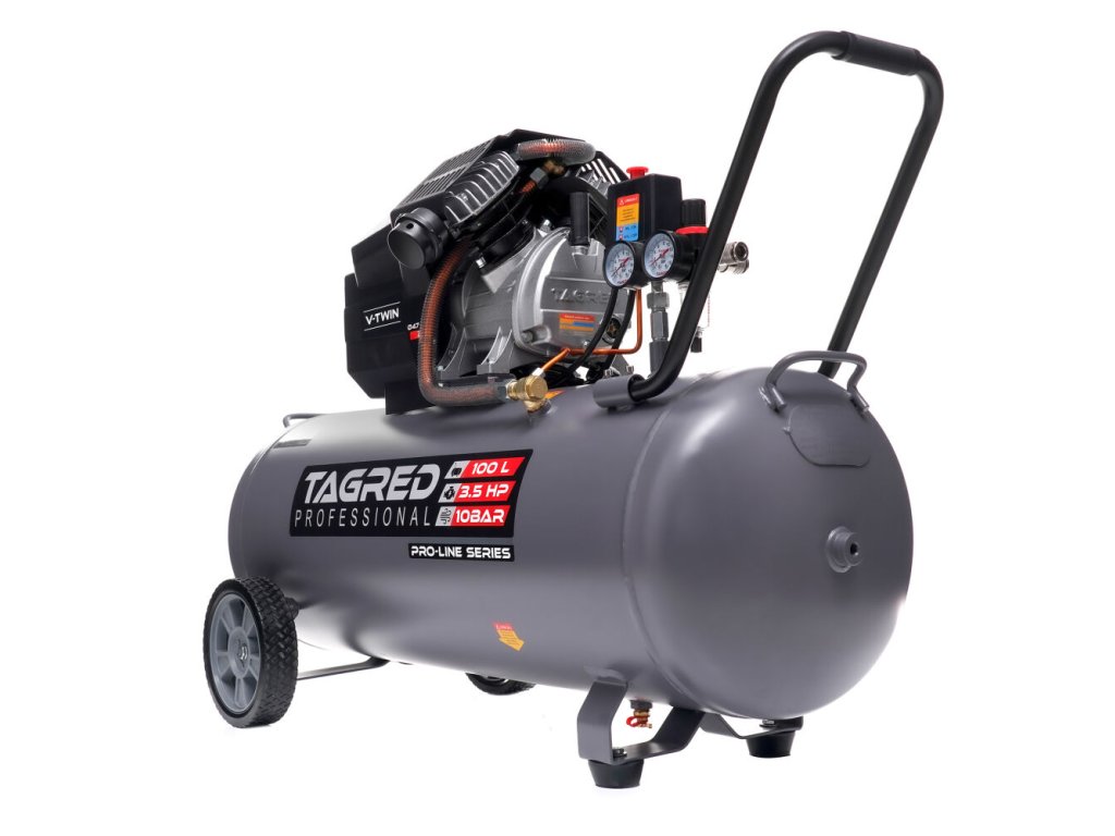 Мощният маслен компресор TAGRED Pro-Line е здраво и надеждно устройство, предназначено за интензивна работа в работилница, гараж и за домашна употреба. Благодарение на двубуталната конструкция, високата мощност и максимално налягане от 10 bar, той осигурява стабилно подаване на сгъстен въздух за широк спектър от пневматични инструменти. Издръжливата конструкция с чугунени цилиндри и ефективна система за охлаждане осигурява дълъг експлоатационен живот дори при продължително натоварване.