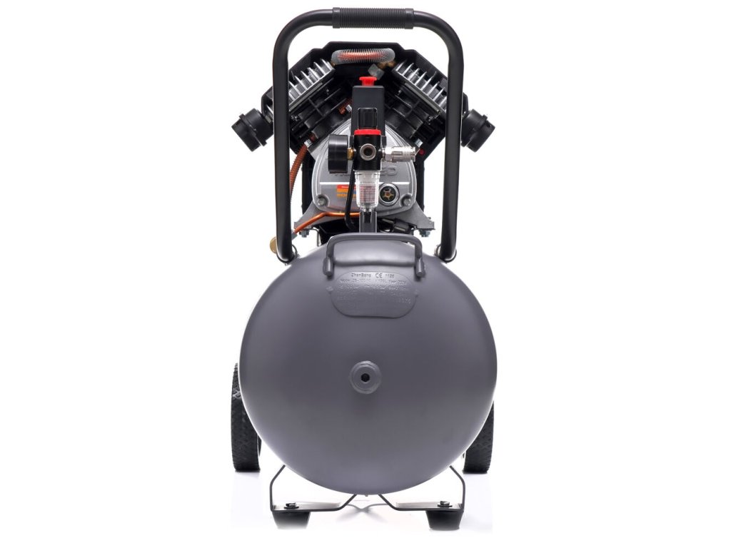 Големият резервоар с обем 100 литра позволява по-дълга работа без често включване на двигателя. Компресорът е оборудван с редуцир вентил с манометър, кондензатоотделител и бързи връзки за лесно свързване на пневматични инструменти.