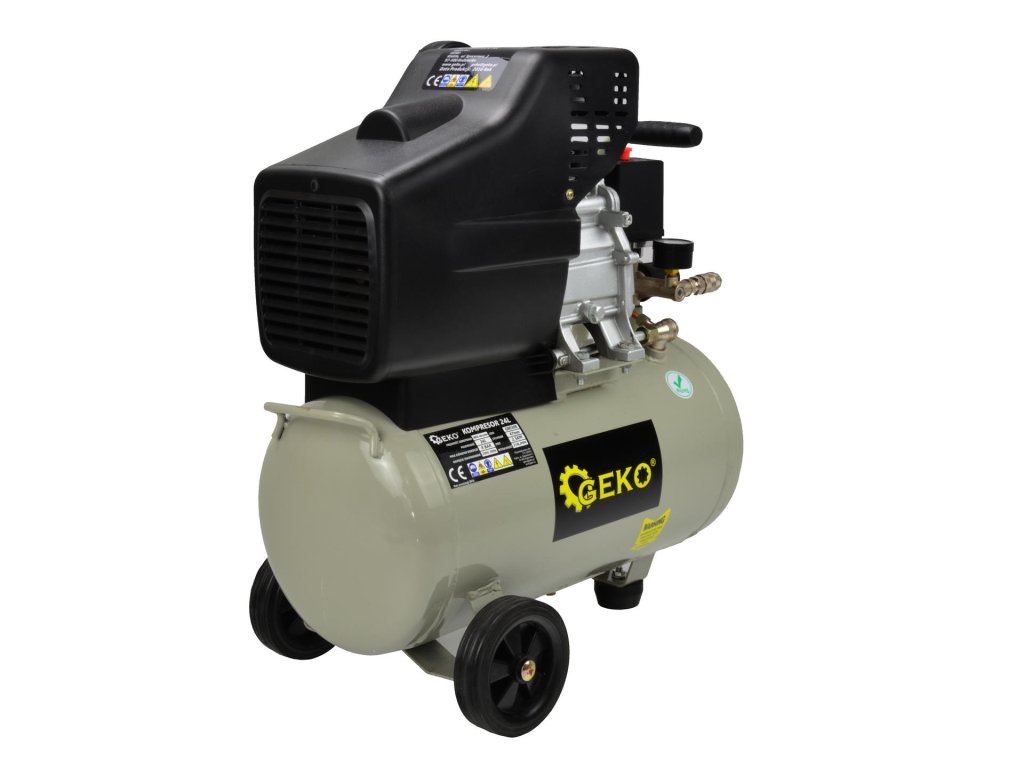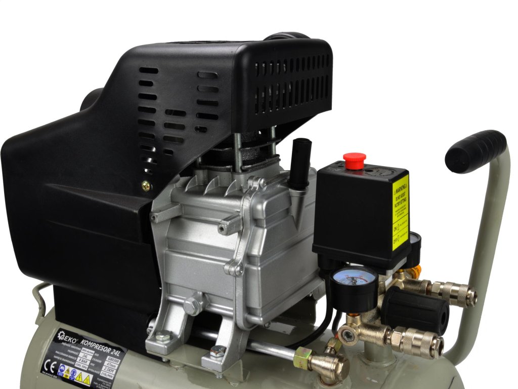 Този компресор с обем на резервоара 24 литра е оборудван с маслообдувна помпа, която е идеална за продължителна работа. В комплекта е включен манометър, показващ налягането в резервоара, както и редуктор с манометър, позволяващ настройка и контрол на изходното налягане.