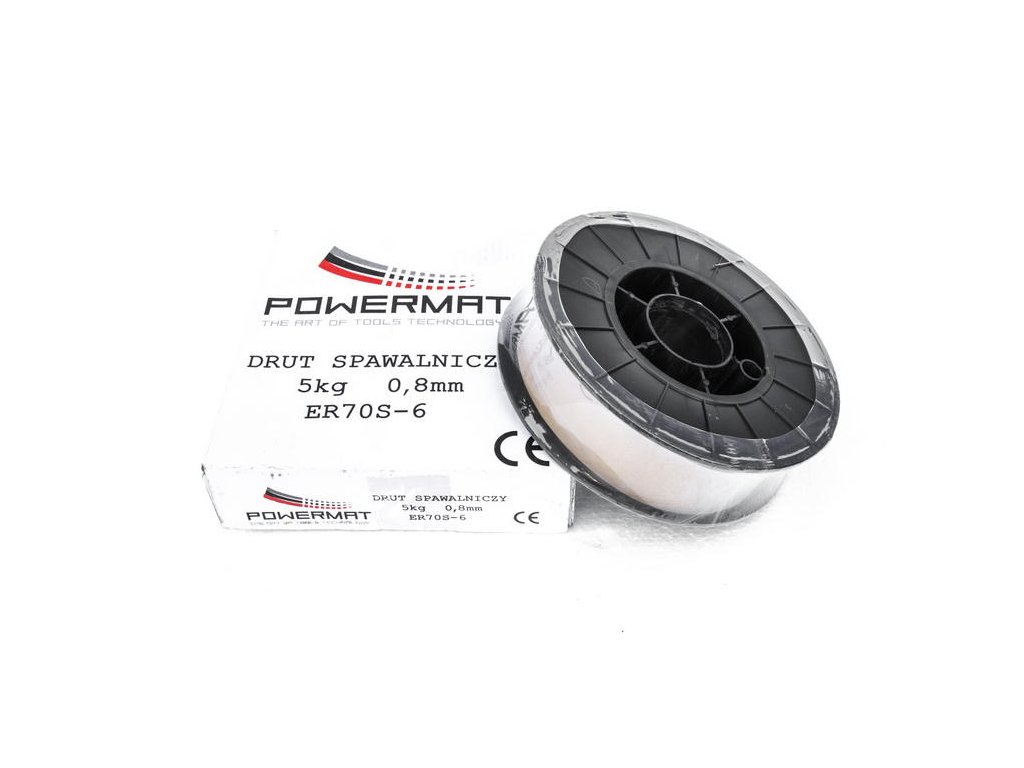 Този висококачествен меден заваръчен тел е предназначен за професионална употреба. Мангановият тел Powermat с маркировка ER70S-6 с диаметър 0,8 мм е идеален за заваряване по метод MIG/MAG. Съдържа добавки от манган и силиций, което осигурява висока здравина и качество на заваръчния шев. Проектиран е за заваряване на нелегирани стомани, като котлови стомани, конструкционни стомани, ламарини и корабостроителни стомани, както и за въглеродни и манганови стомани в защитна газова атмосфера. Този тел е много ефективен и в автосервизни работилници, където се използва при заваряване на гърнета и кузовни ламарини. Освен това подходящ за заваряване на тънки ламарини с минимална граница на текучество под 420 MPa.