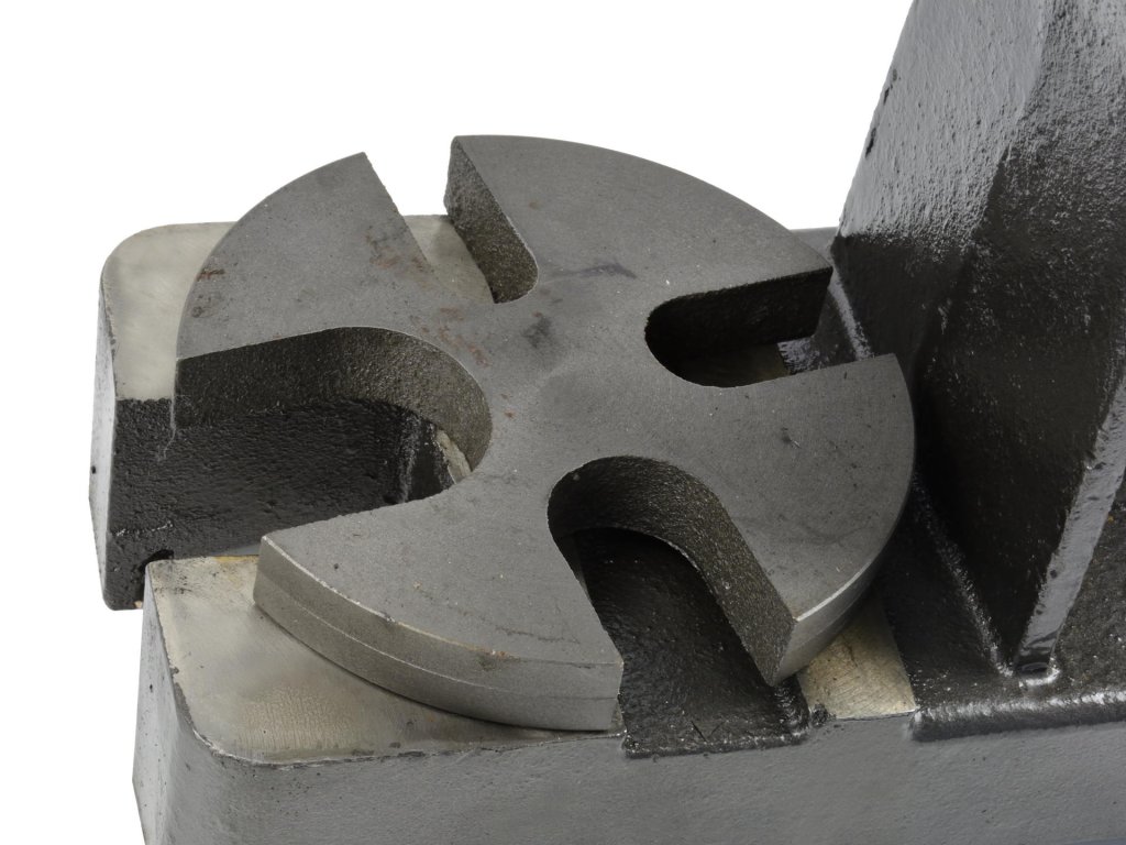 Точността на работа се гарантира от фрезованите зъбци на буталото, позволяващи прецизна обработка. Работният плот е оборудван с четири отвора за закрепване, осигуряващи лесно фиксиране на материала. Цялата конструкция е изработена от висококачествен сив чугун, което гарантира дълъг живот и висока устойчивост на износване.