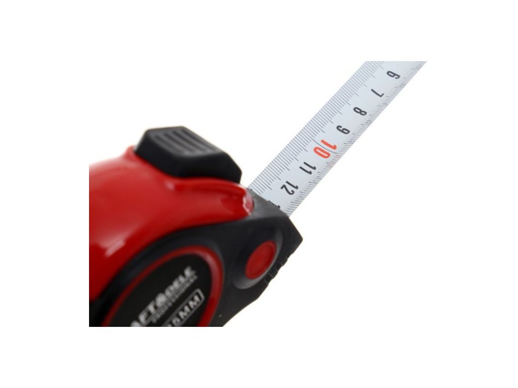 Измервателният инструмент е с противохлъзгащо гумено покритие, което осигурява сигурен захват при всички условия на работа. Лентата е изработена от стомана.