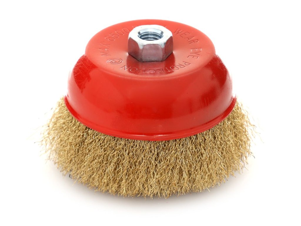 Професионална телена четка от месингова вълнообразна тел, гарантираща дълъг експлоатационен живот и ефективно почистване. Четката е с вътрешна резба M14, което осигурява лесно и бързо закрепване към ъглошлайфи.