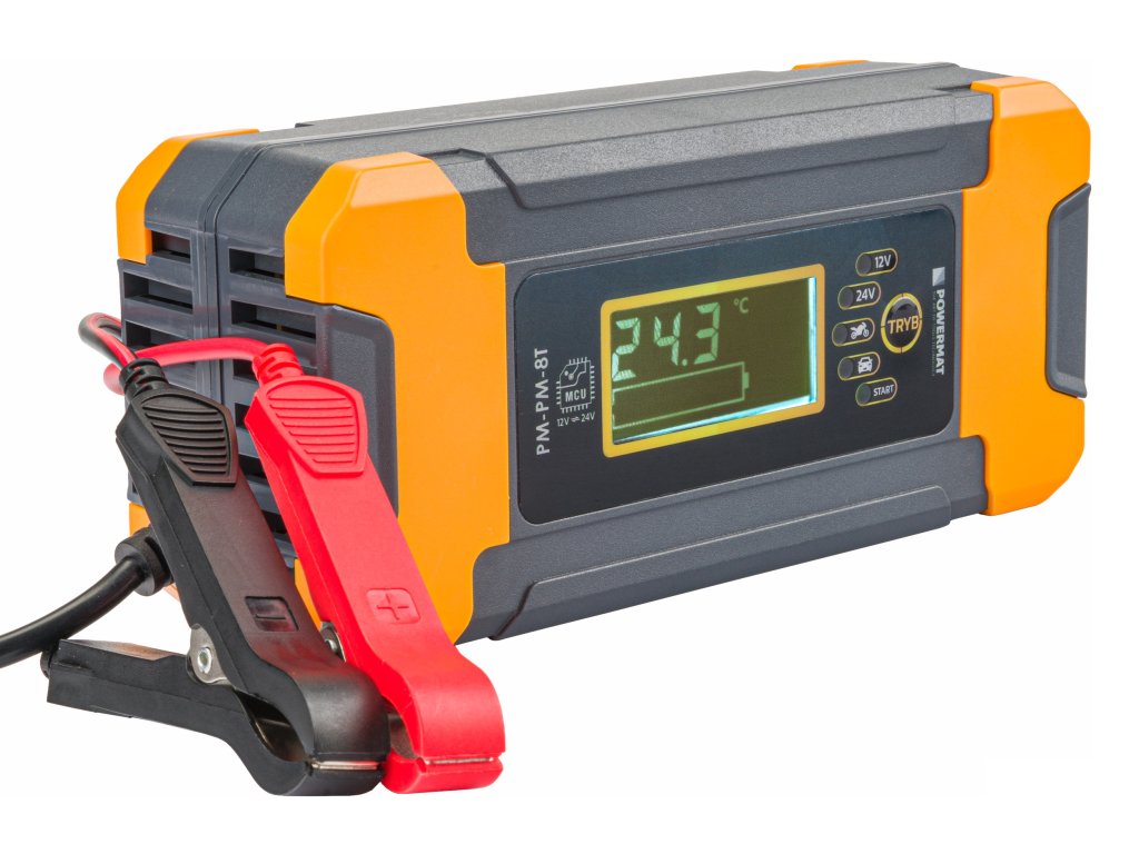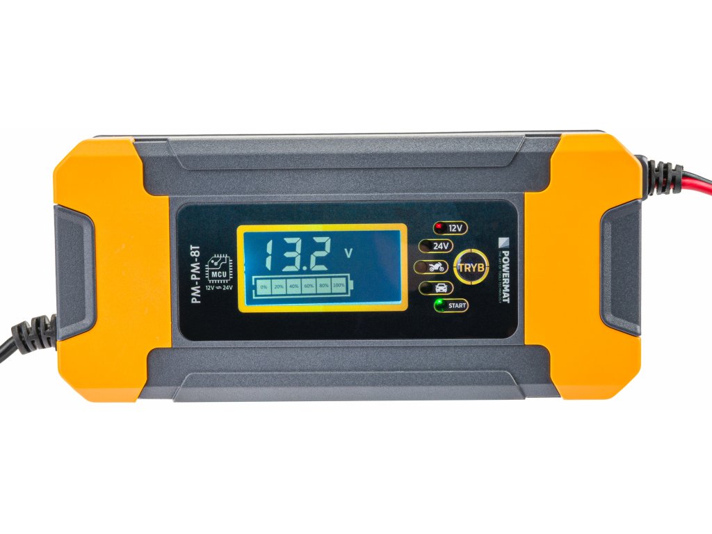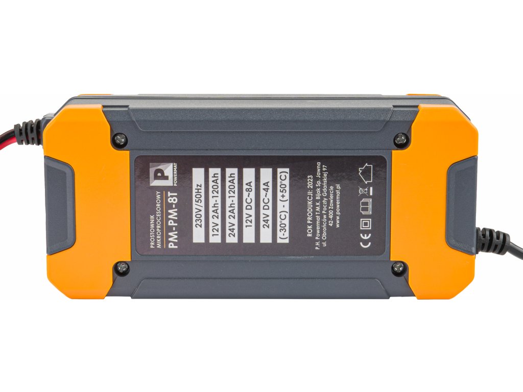 Висококачествен автоматичен и прецизен микропроцесорен изправител за акумулатори Микропроцесорно зарядно устройство 12/24V PM-PM-8T е идеален както за професионални автосервизи, така и за домашни гаражи. Устройството позволява зареждане с напрежение 12V и 24V.