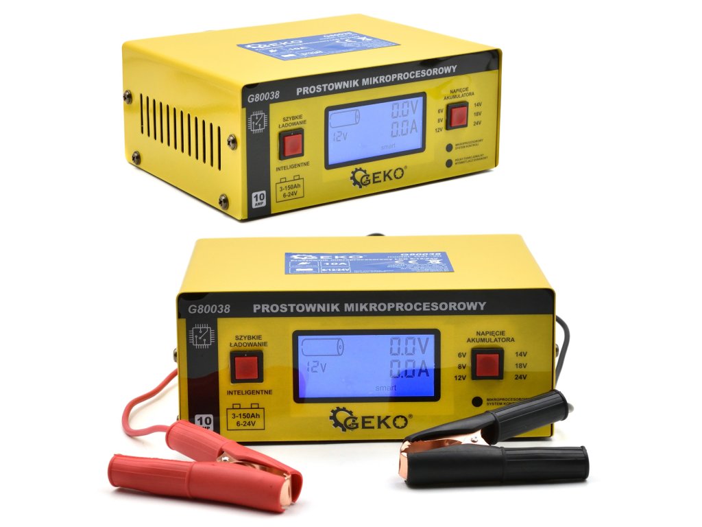 Микропроцесорно зарядно устройство LCD 6/12/24V G80038 е идеалното решение за зареждане на акумулатори 6V, 12V и 24V. Зарядният ток е регулируем от 0A до 10A.