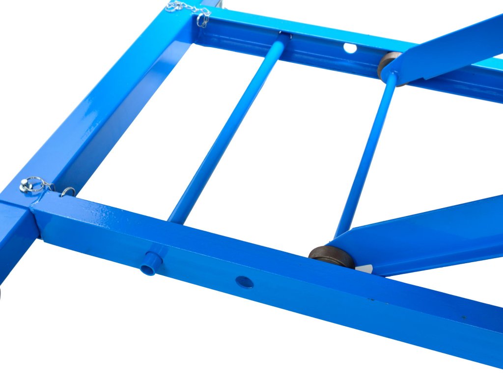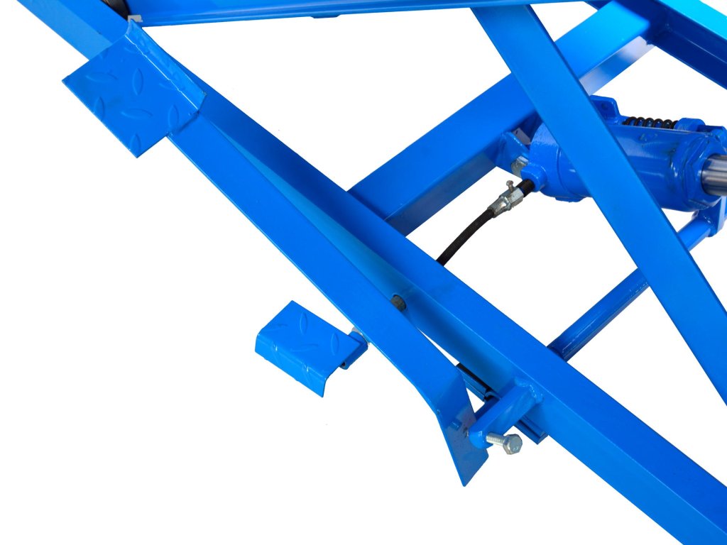 Този платформа подемник разполага също с отвори отстрани за допълнително обезопасяване на мотоциклета с помощта на въжета или колани. Хидравличният подемник се управлява с педал, което позволява лесно и удобно повдигане на мотора.