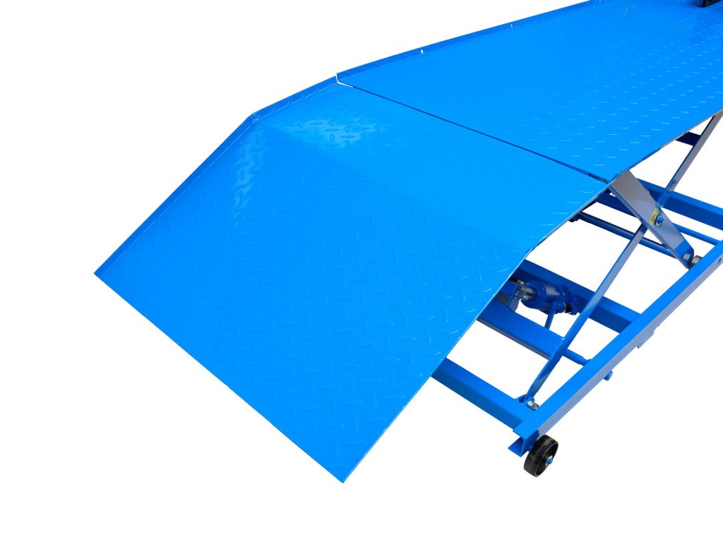 Една от ключовите характеристики на този подемник е двустепенният предпазен ключ, който предотвратява случайното спускане по време на работа. Освен това, отделяемият заден наклон удължава работната платформа до 204 см, а при използване на цялата наклонена рампа тя достига дължина от 248 см. Работната повърхност е оборудвана с антислип покритие и свивач за предната гума, което осигурява стабилност на мотоциклета върху платформата по време на работа.