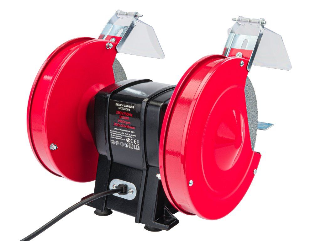 Мощна настолна шлайфмашина, подходяща за домашна употреба. Нейните функции без вибрации и прецизно шлифоване осигуряват дълъг живот на уреда. Шлайфмашината е оборудвана с метален предпазен капак, регулируеми аксесоари и защитни капаци против искри. Моделът RED TECHNIC RTSS0084 трябва да присъства във всяко домакинство и домашна работилница. Този уред е предназначен за суха употреба в областта на шлифоването, заточването и почистването на различни режещи инструменти, ножове, свредла, метални части, ключове и други инструменти и предмети.