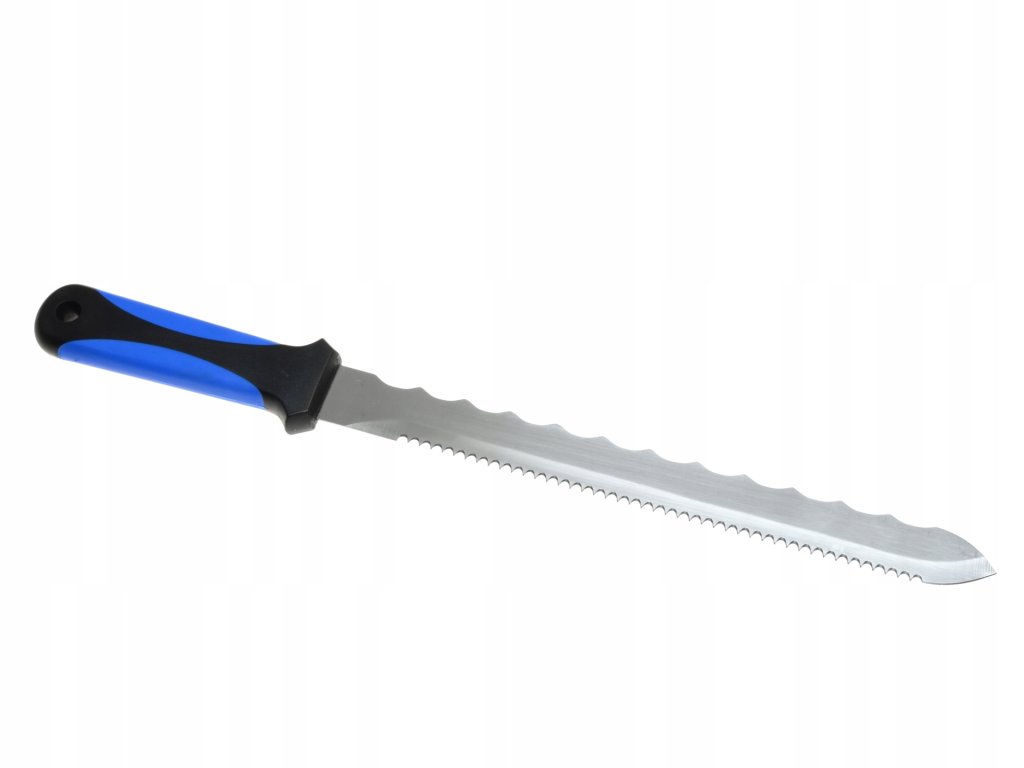 Идеален инструмент за ефективно рязане на минерална вата и полистирен. Благодарение на двустранното зъбесто острие, се справя с рязането както на твърди, така и на меки материали. Едната страна на ножа е предназначена за твърди материали, докато вълнообразното острие е перфектно за мека минерална вата. Дръжката от противохлъзгащ материал гарантира удобен и сигурен захват по време на работа.