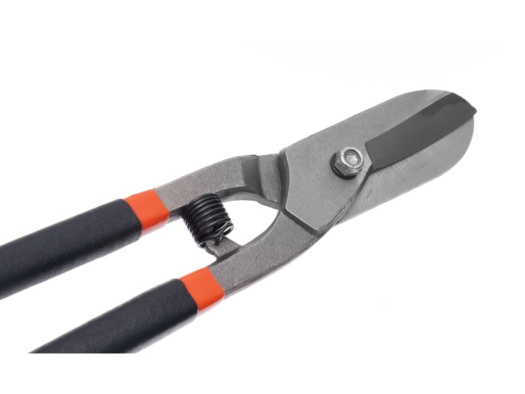 Ножици за рязане на ламарина от престижната полска марка инструменти Kraft&Dele professional. Издръжливи закалени остриета на ножиците. Ергономично оформената дръжка осигурява сигурен и удобен захват на инструмента. Ножиците имат заключване в затворено положение.