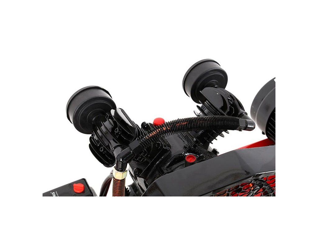 Компресорът е оборудван с високопроизводителен двуцилиндров двигател с мощност 5,2 HP (около 3,9 kW).