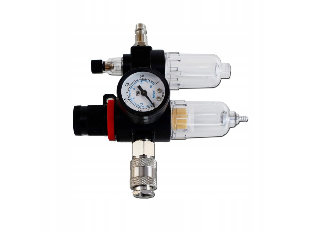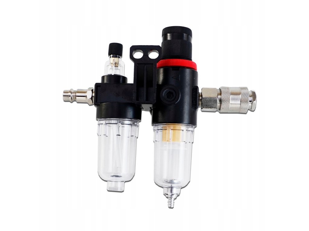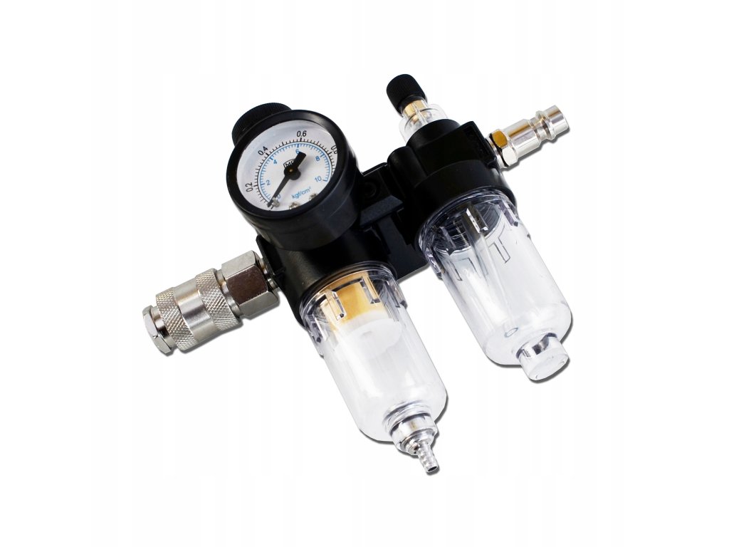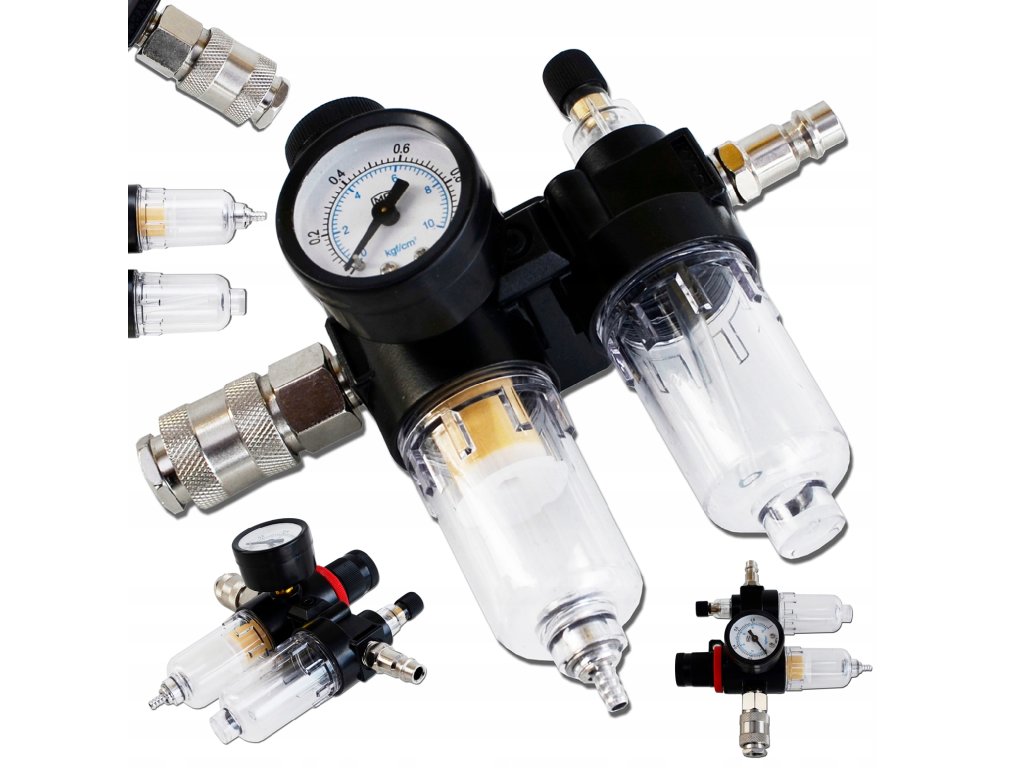 Приложение: Този комбиниран отводнител, филтър и оливатор е необходим за осигуряване на чист, сух и правилно смазан въздух в пневматичните системи. Идеален за употреба с боядисващи пистолети, пневматични инструменти и шлифовъчни машини.