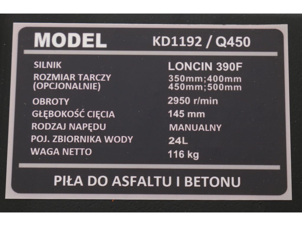 Pišť do asfaltu a betonu od společnosti Kraft&Dele. Přístroj je určen k řezání asfaltu a betonu po přímce. Představený model je poháněn profesionálním motorem LONCIN 390F. Tato značka je známá svou nejvyšší kvalitou a odolností svých výrobků. Pohon je přenášen pomocí klinových pásek odolných vůči přetížení během práce přístroje. Konstrukce pily umožňuje namontovat kotouč o průměru od 350mm do 500mm. Pišť má ochranu chránící před kontaktem s kotoučem během práce a chladícím systémem kotouče. Chlazení kotouče probíhá pomocí vody, nádrž pojme 24L vody. Další výhodou je vodicí lišta umožňující přesně nastavit řezací linii a kontrolovat ji během práce.
