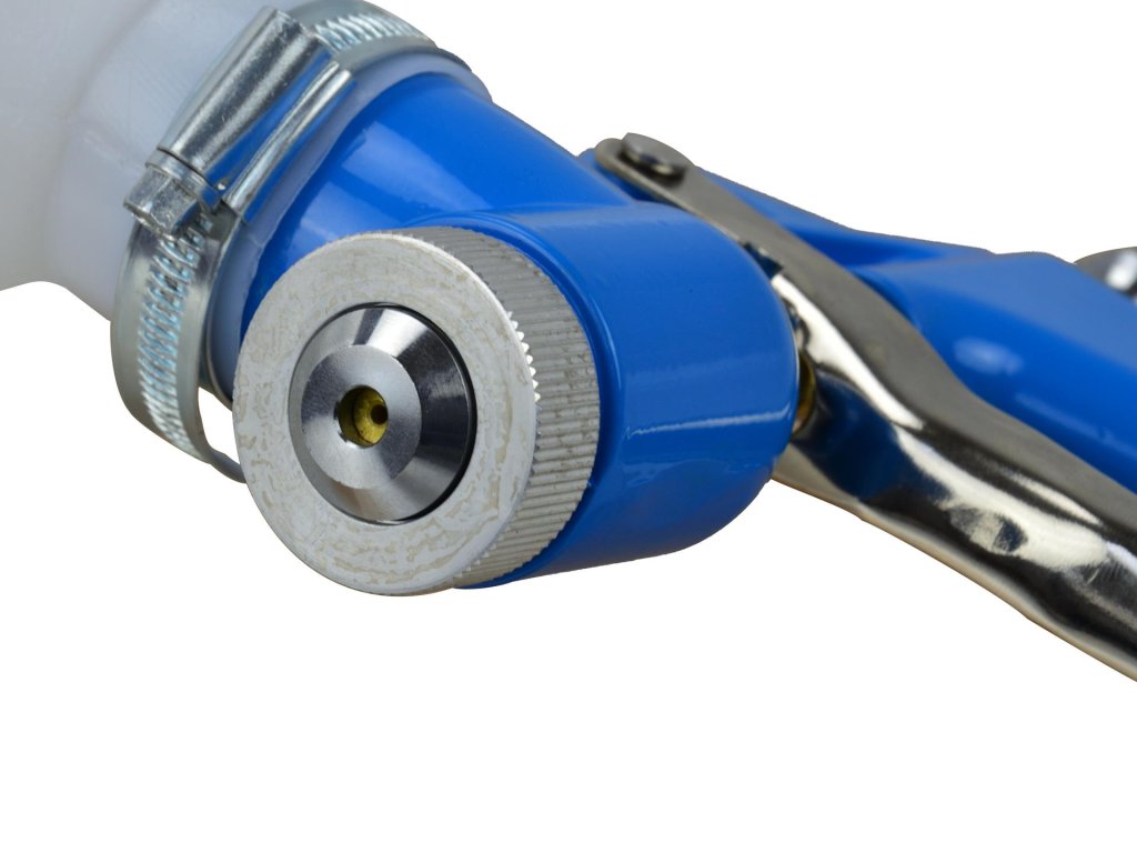 - Покрит резервоар: Резервоарът на пистолета е частично покрит, което улеснява боядисването на тавани.