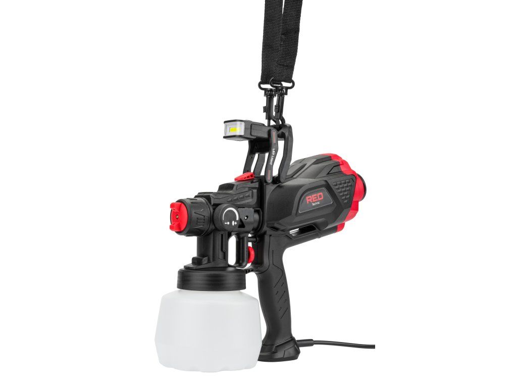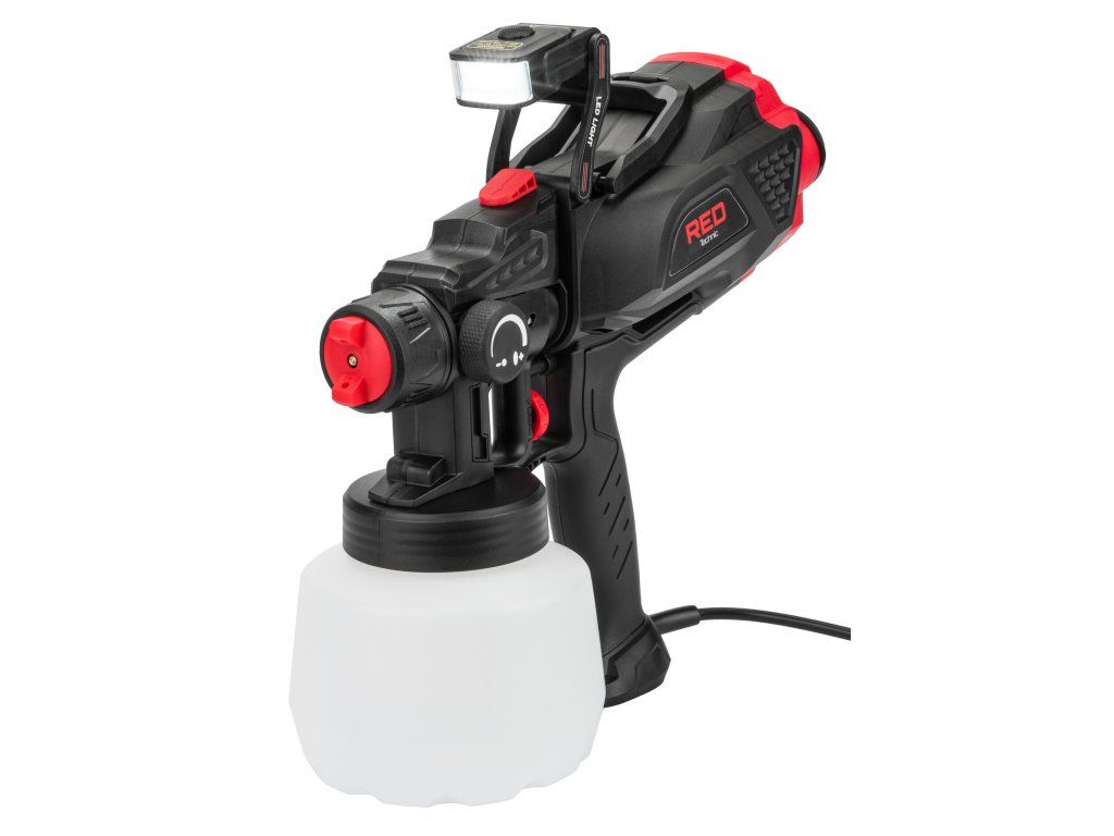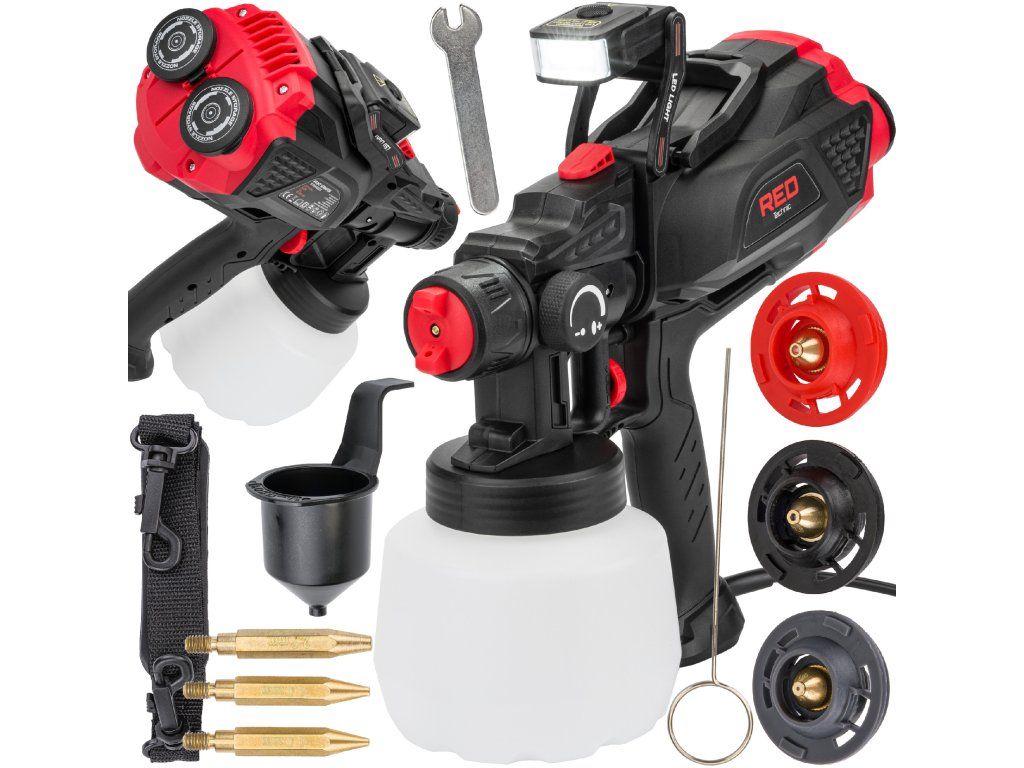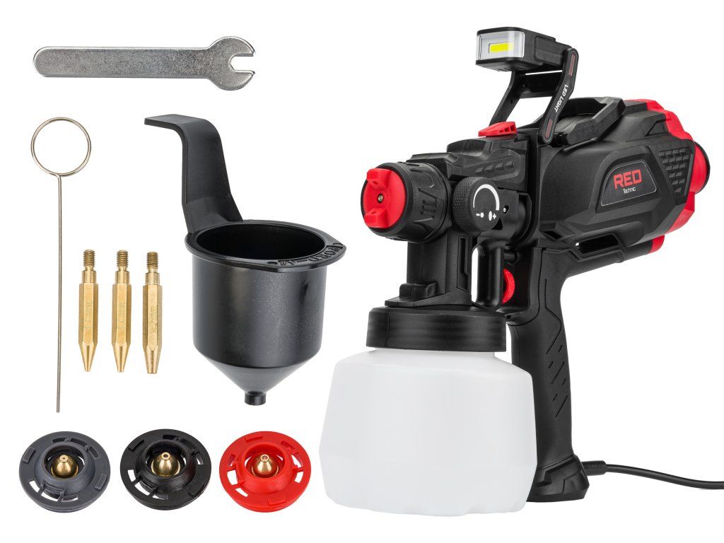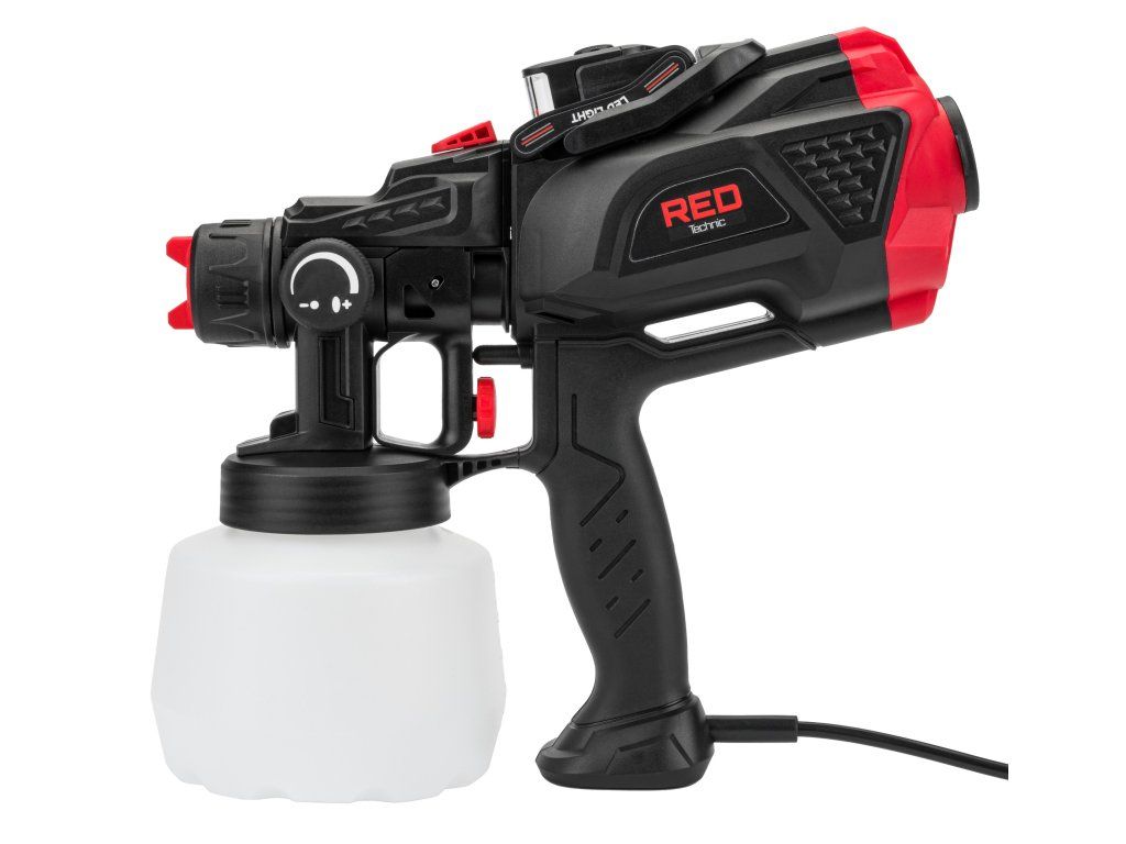 Пистолет за боядисване RED TECHNIC RTPDM0020 650 W от тип HVLP работи чрез разпръскване на боята или друга течност в поток въздух вътре в резервоара. Абревиатурата HVLP означава висок обем и ниско налягане. Компресиран въздух, подаван към пистолета от компресора, се насочва към дюзата и резервоара с боя. Налягането изтласква боята от резервоара. Разпръснатите частици боя се насочват през дюзата, формирайки фин аерозолен поток.