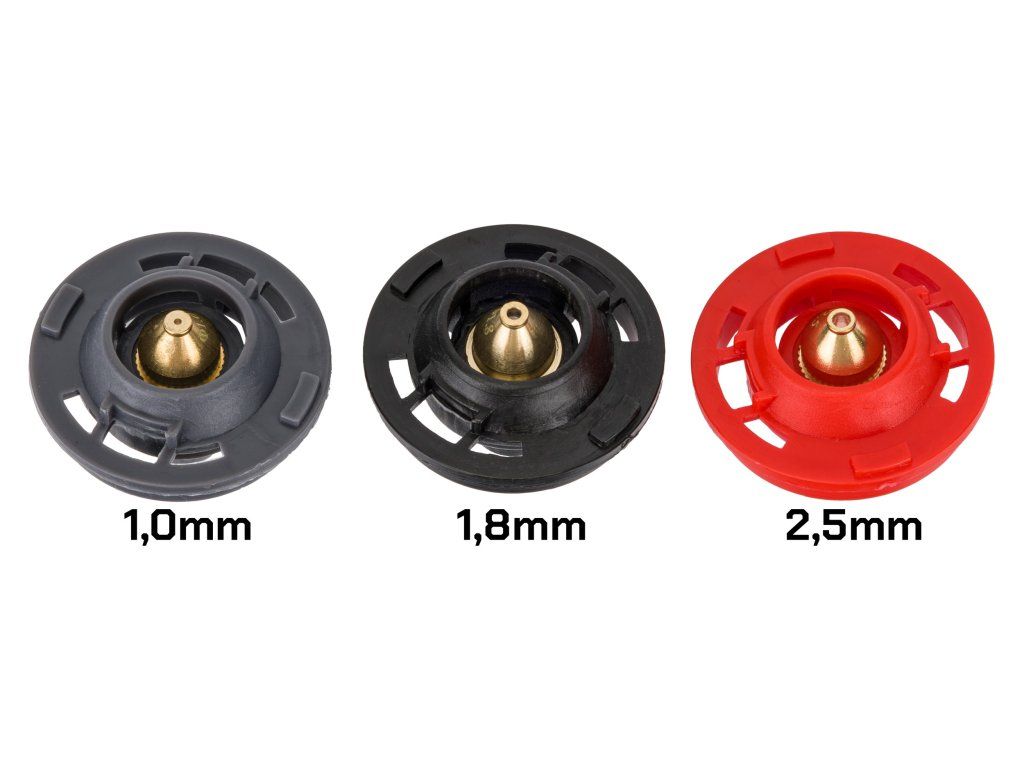 - Размери на дюзите: 1.0 / 1.8 / 2.5 мм