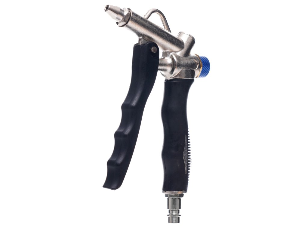 Висококачествен пистолет за боядисване, проектиран за прецизно и ефективно почистване, дори на трудно достъпни места. Покрит с висококачествена гума, осигуряваща безопасна и щадяща употреба. Пистолетът разполага с регулиране на въздушния поток и накрайник с дължина 110 мм, оборудван със силиконова защитна капачка за предпазване от надраскване на повърхностите. Изработен е от алуминиеви сплави, осигуряващи здравина и надеждност.