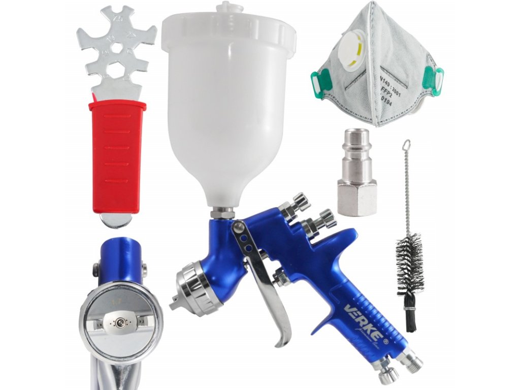 Пистолет за боядисване TT 1,7 мм VERKE V81291 е предназначен за професионална употреба. Висококачествените нискотемпературни HVLP пистолети на Verke впечатляват с професионална изработка и висока прецизност при нанасяне на боя. Отлично разпръскване, бързина на работа, ергономичен дизайн и най-високо качество на изработка са основните им предимства. Подходящи са за използване в различни индустрии и области. Висококачествената дюза и игла от неръждаема стомана с възможност за три настройки осигуряват пълен контрол върху работата. Пистолетите Verke се отличават с ергономична и лека ръкохватка, която гарантира дълга и комфортна работа.