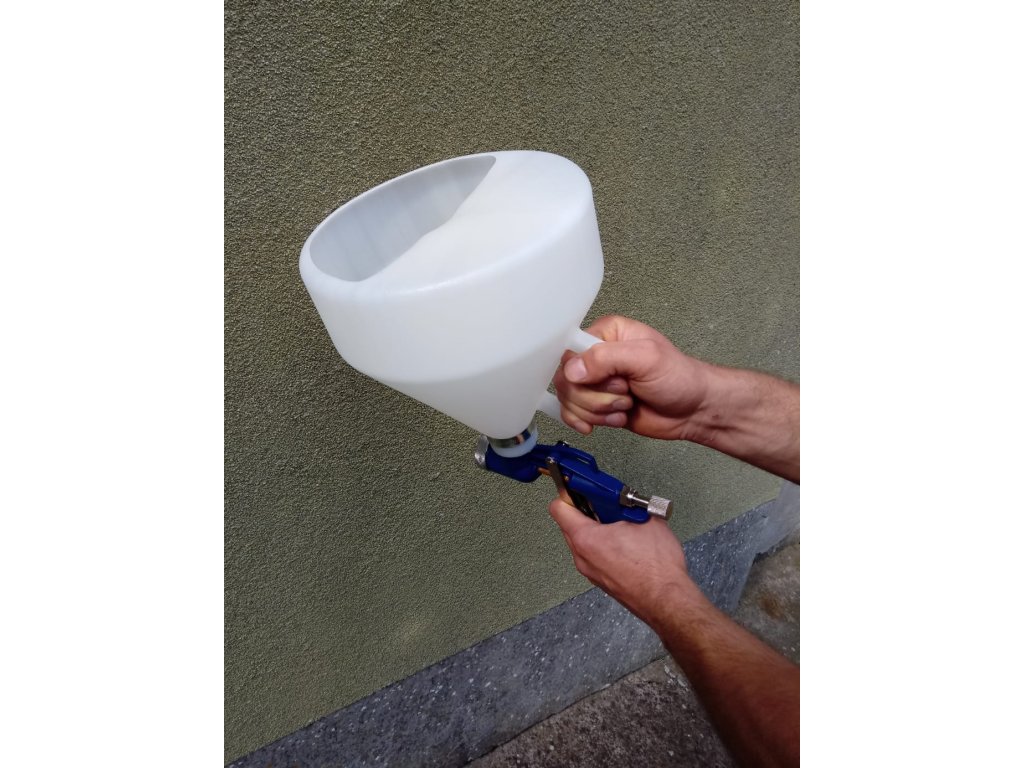 Пистолетът осигурява равномерно нанасяне на мазилки и шпакловъчни равни слоеве. С негова помощ лесно можете да създавате текстури, като популярния ефект „овча кожа“ върху стените.