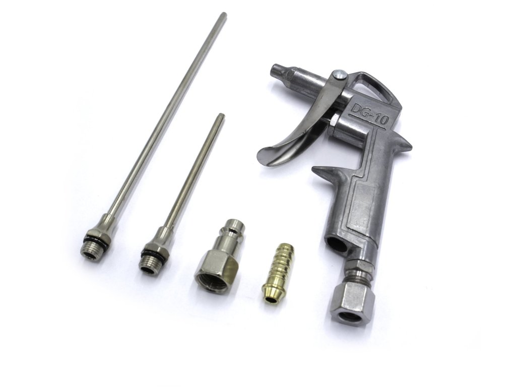 Висококачествен комплект за прецизно духане, идеален за почистване на замърсявания от труднодостъпни зони. Освен професионален пистолет за духане, комплектът включва 3 регулируеми дюзи и 2 въздушни присъединителя, които осигуряват максимално използване на уреда.