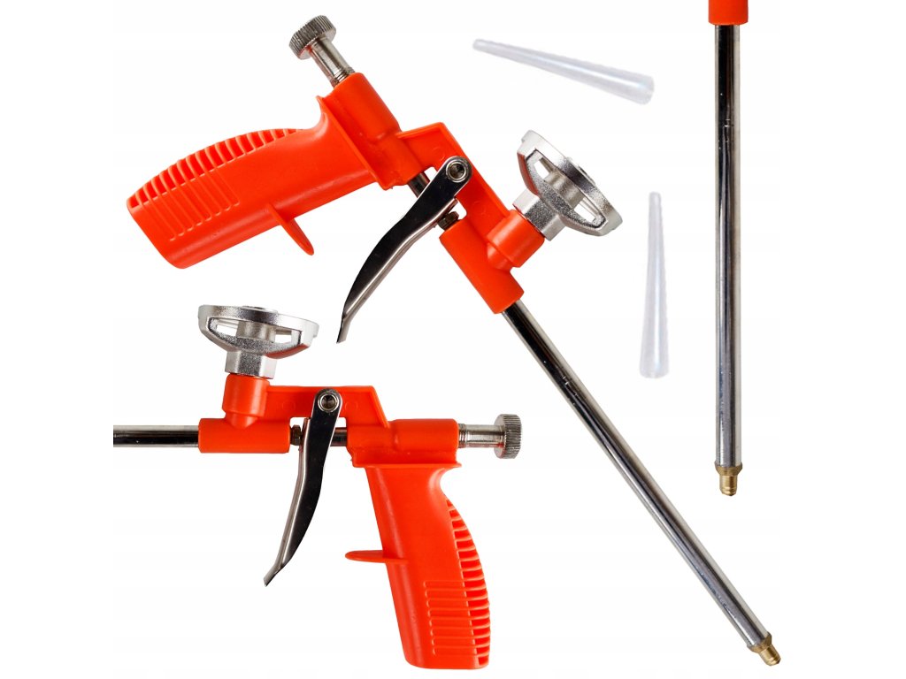 Пистолет за монтажна пяна с удобен регулатор за прецизно дозиране на уплътнител. Този инструмент е идеален за нанасяне на монтажна пяна и уплътнители с висока точност. В комплекта ще намерите 2 бр. пластмасови накрайника. Този инструмент осигурява ефективно нанасяне на пяна, висока издръжливост и дълъг експлоатационен живот, като намалява необходимостта от повторни ремонти.