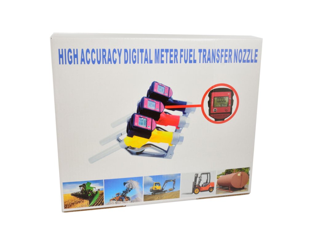 Този висококачествен пистолет е предназначен за преливане на горива. Благодарение на цифровия LCD дисплей, интегриран в турбината на пистолета, имате възможност да следите разхода на гориво с точност +/- 0,2%. Това е незаменимо устройство за автосервизи, селскостопански предприятия и домашна употреба. Обърнете внимание, че продуктът не е подходящ за наливане на бензин.