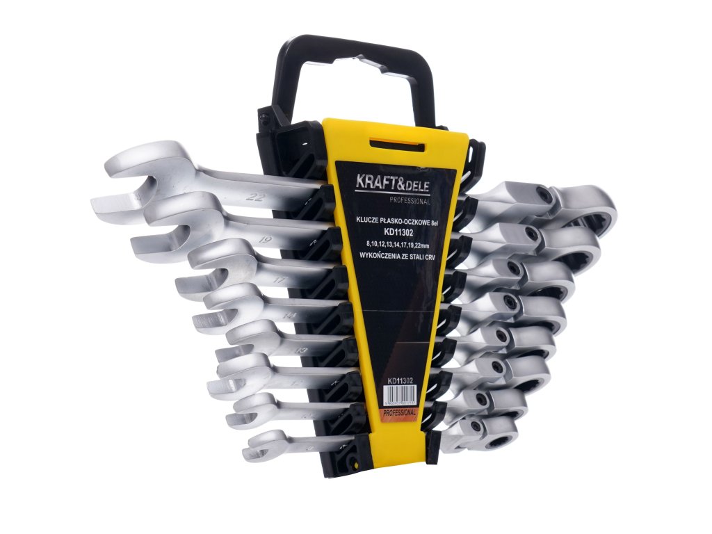 Комплект плоски и звездогаечни ключове 8 бр. KD11302Комплект на марката Kraft & Dele модел KD11302 е изработен от висококачествена хромирана въглеродна стомана.