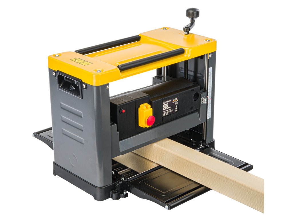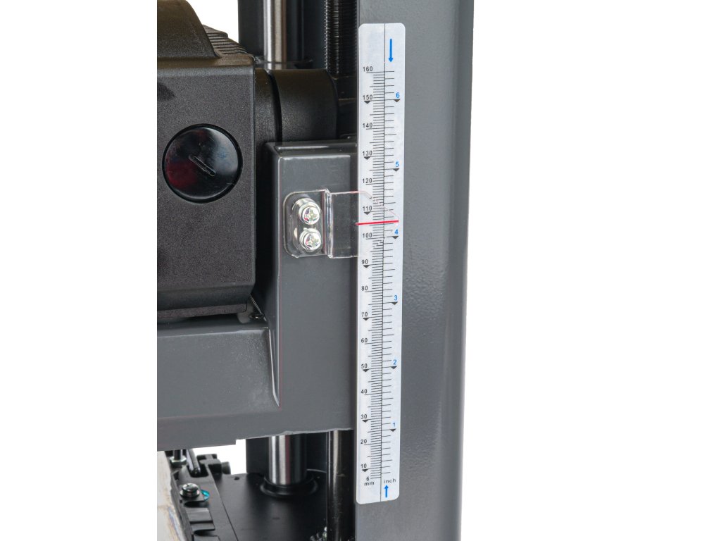 Настройка на дебелината чрез регулатор: Ергономичният регулатор позволява лесна настройка на дебелината на рендосване, което улеснява прецизното адаптиране на машината към конкретната дебелина на материала.