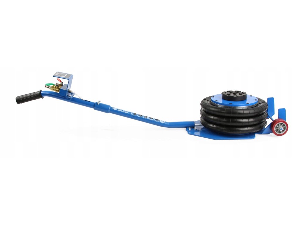 Това пневматичен мехов крик с товароподемност 3500 кг е идеалният инструмент за работа с автомобили, включително и с такива с нисък клиренс. Благодарение на минималната си височина в неактивно състояние от 15 см, той може лесно да се използва дори под спортни автомобили.