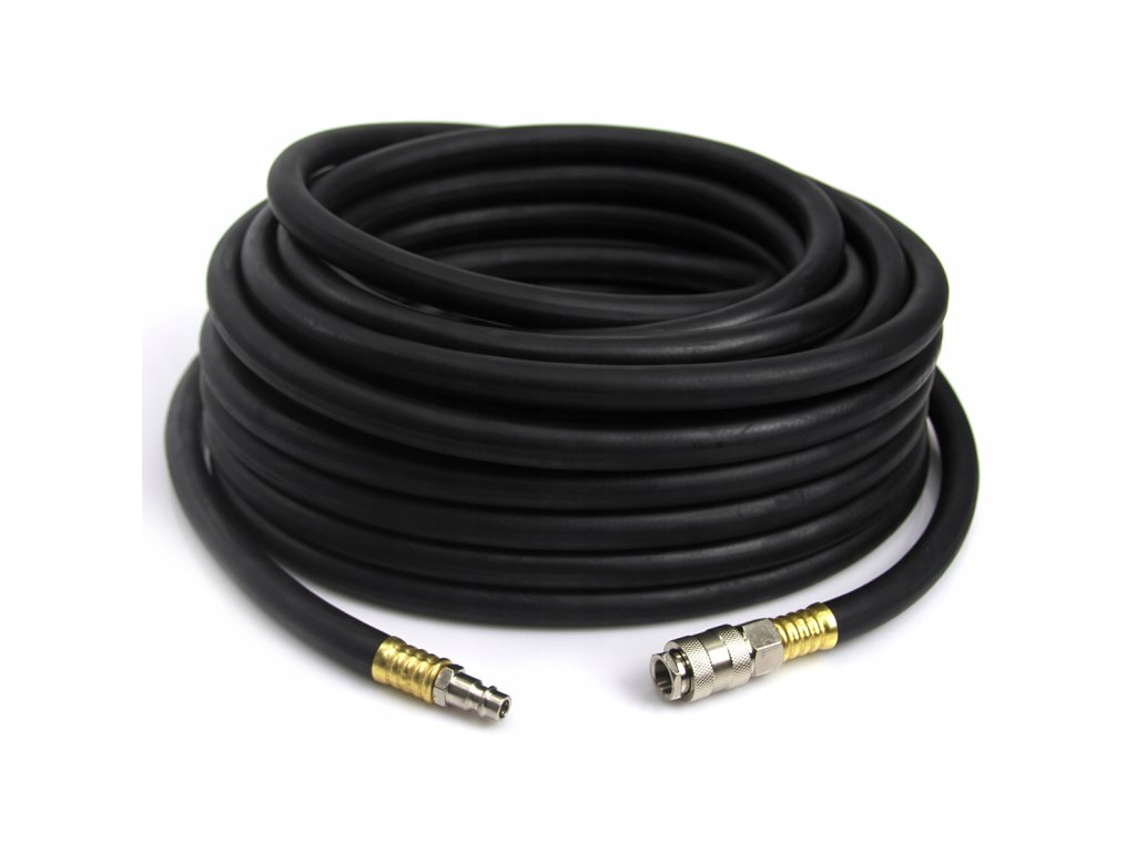 Гумен пневматичен маркуч е идеален за захранване на всички видове пневматични инструменти, включително шлайфмашини, пистолети за боядисване, пневматични чукове и бормашини. Проектиран е да не е спирален, което улеснява навиването на барабан. Най-голямото му предимство е маслоустойчивата гума, която е гъвкава и устойчива на високо налягане.