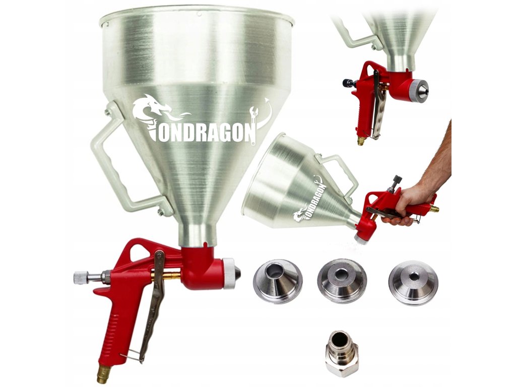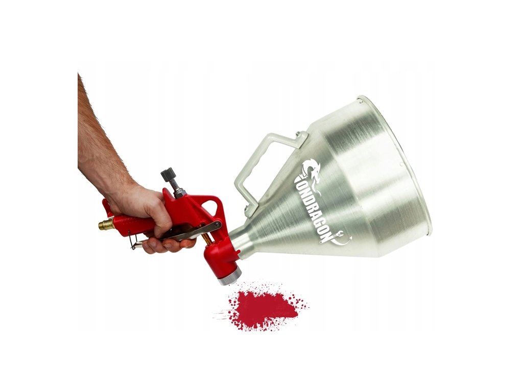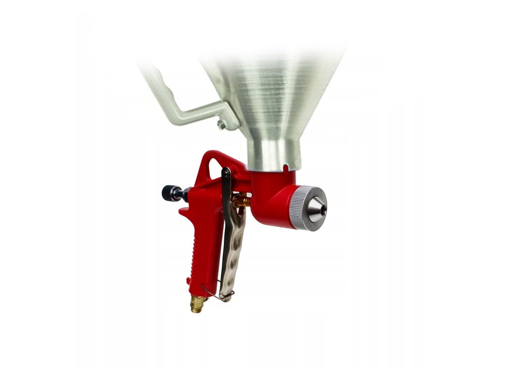 Благодарение на алуминиевата конструкция, пистолетът е лек, издръжлив и лесен за почистване. Той е оборудван с мощни сменяеми дюзи от неръждаема стомана и може да се използва с малки компресори на налягане 2-4 атмосфери. Резервоарът е покрит до половина, което позволява удобно боядисване на тавани без нужда от допълнителни настройки.