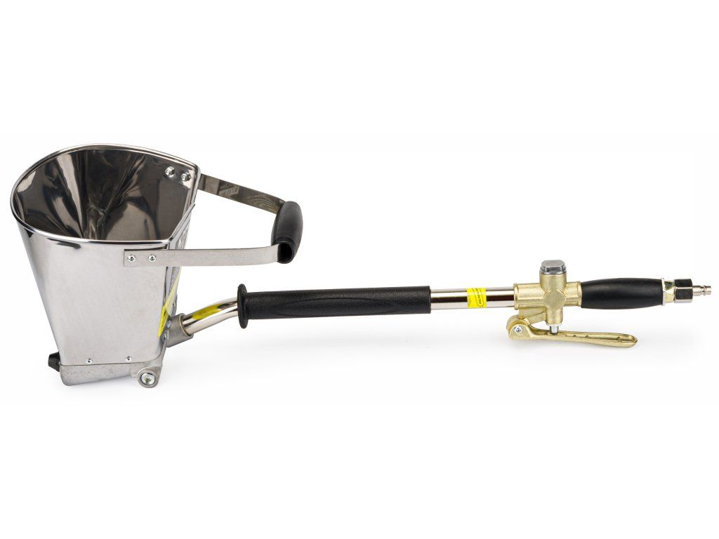 Пневматична мазилка за стени PM-TP-3T е изработена от висококачествена неръждаема стомана и алуминий, което гарантира здравина и дълъг експлоатационен живот. Дюзите от висококачествена метална сплав осигуряват безпроблемна работа. Машината се отличава с устойчива конструкция и лесна употреба, което улеснява процеса на нанасяне на мазилки.