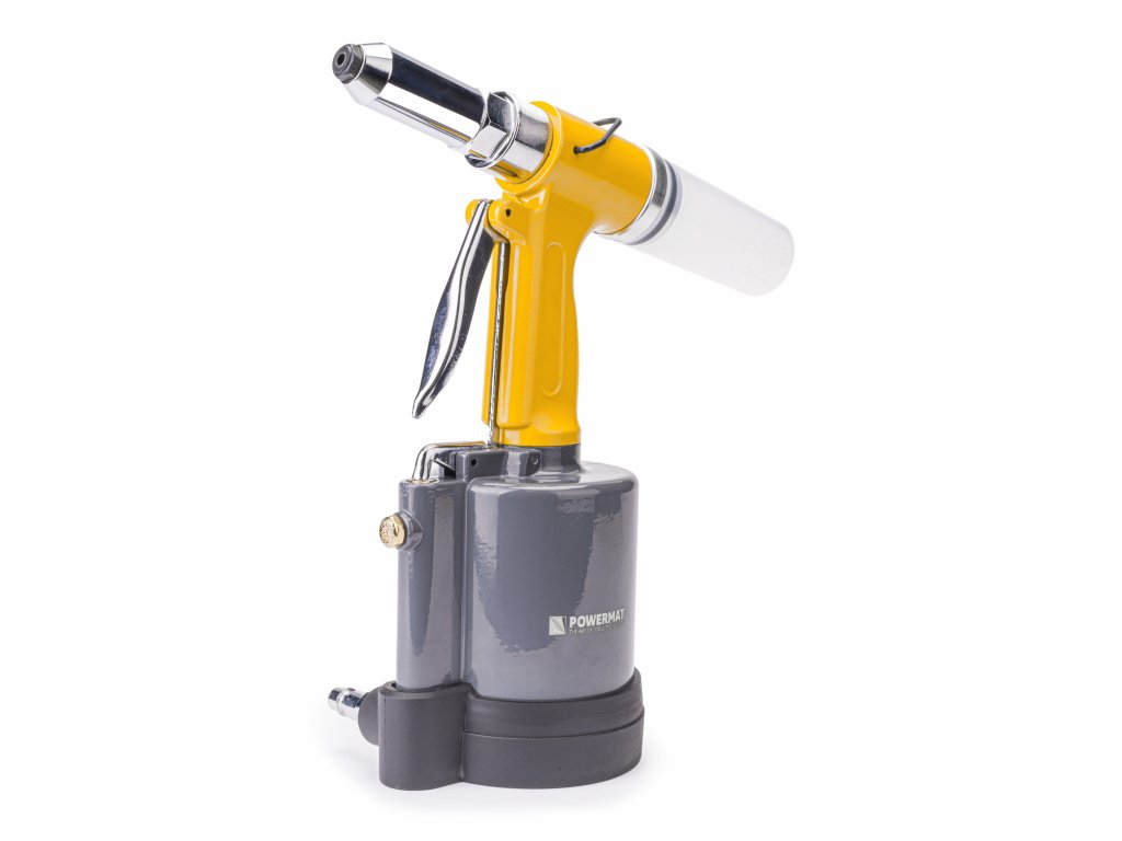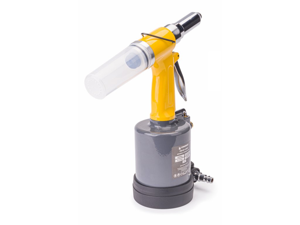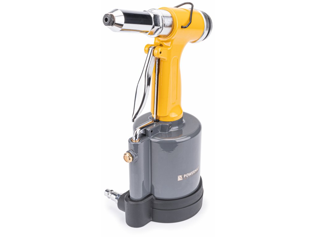 Висококачествената пневматична попнитачка е предназначена за работа с издърпващи нитове с диаметър от 2,4 мм до 6,4 мм. Позволява създаването на здрави и трайни съединения чрез нитове от алуминий, неръждаема стомана, стомана и мед. Попнитачката е оборудвана с контейнер за събиране на отпадъците, получени по време на процеса на нитоване, което я прави идеален инструмент за индустриална употреба.