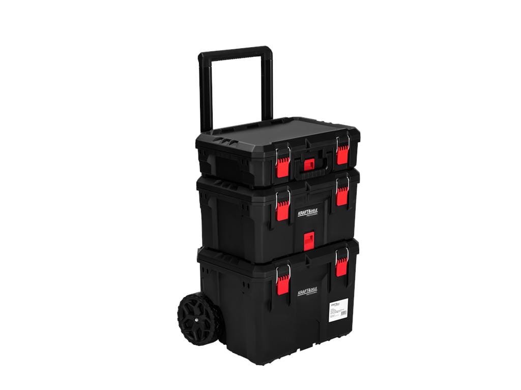 KD1077 е практична и мобилна количка за инструменти, оборудвана с три просторни кутии, идеална за съхраняване и пренасяне на инструменти, аксесоари и монтажни елементи. Здравата конструкция и добре обмислената организация на пространството я правят незаменимо решение в работилници, сервизи и за майстори. Количката е оборудвана с транспортни колела и телескопична дръжка, което улеснява преместванията дори при пълно натоварване.