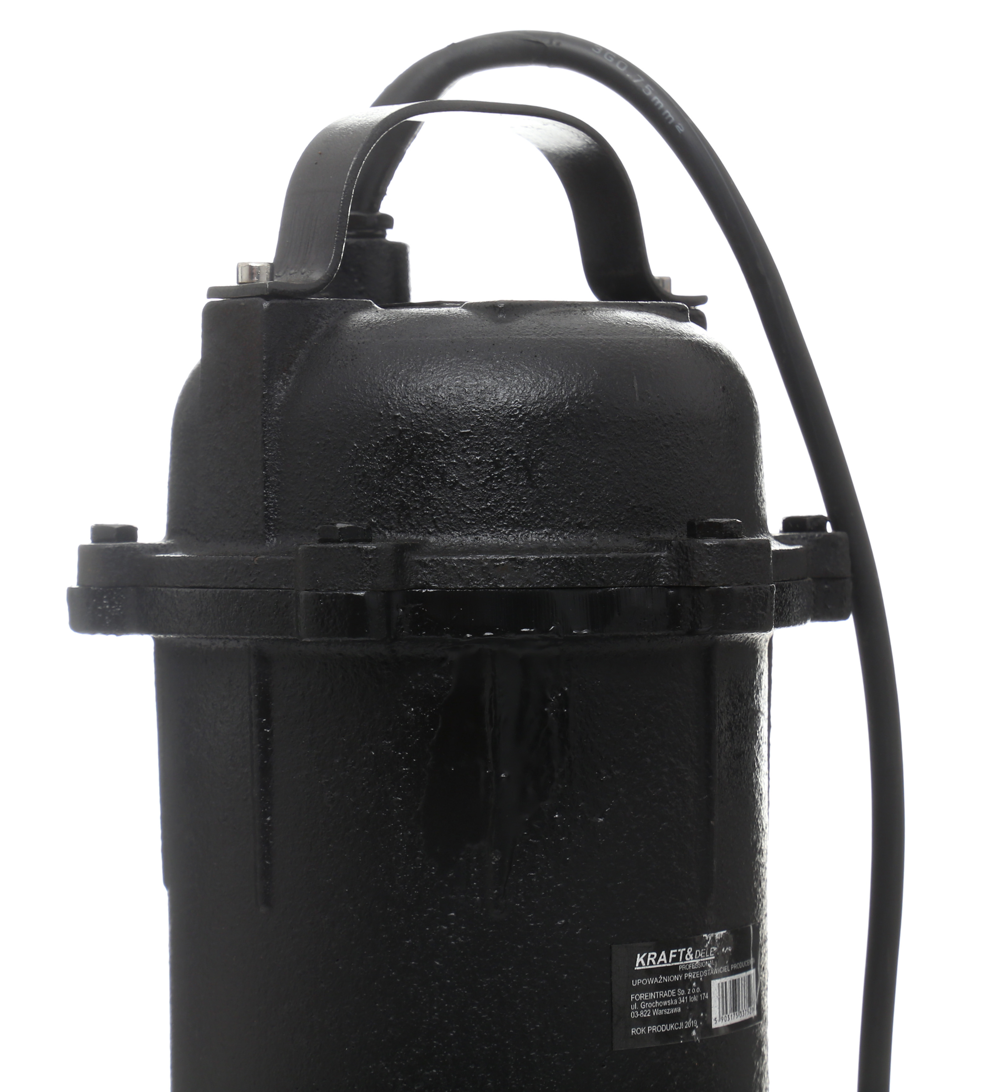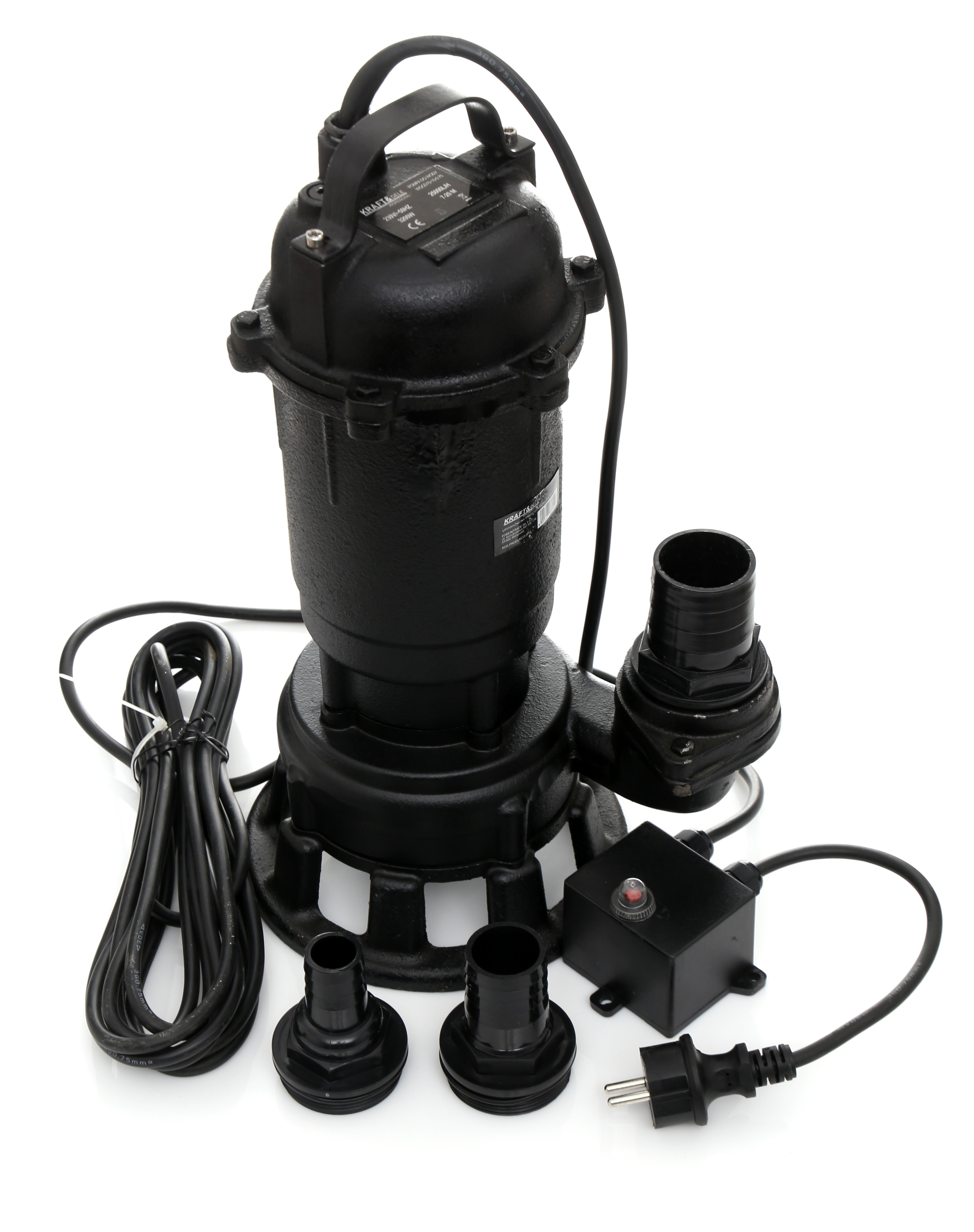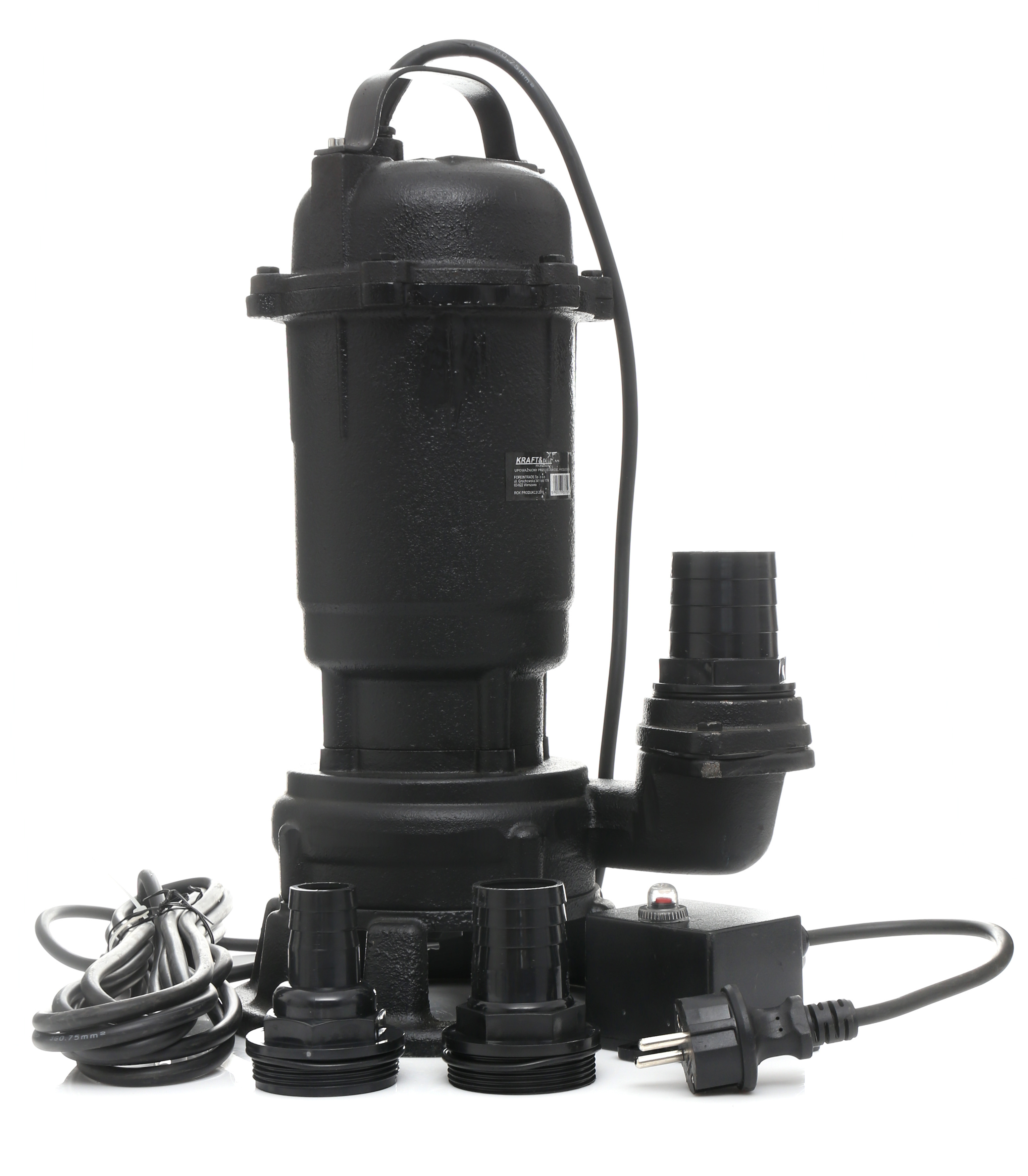 Потопяема помпа за вода с дробилка от марка KRAFT & DELE с максимална мощност 3200 W. Устройството разполага с висока мощност.