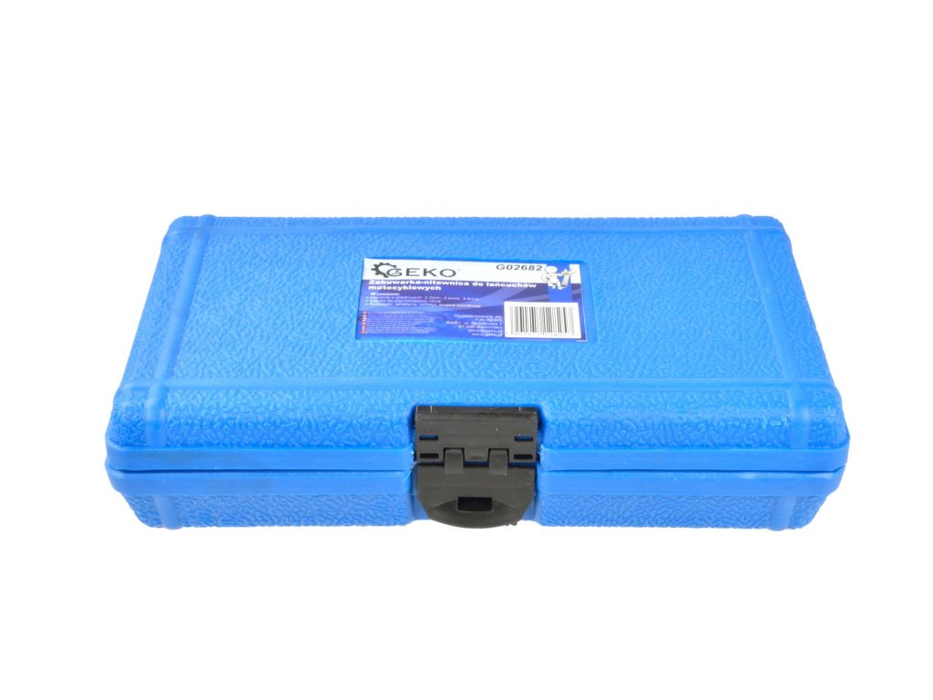 Попнитачка за вериги за мотоциклети G02682 е незаменим инструмент за всяка мотосервиз, велосипедна работилница и автосервиз. Идеален е за заковаване и разваляне на разпределителни и задвижващи вериги.