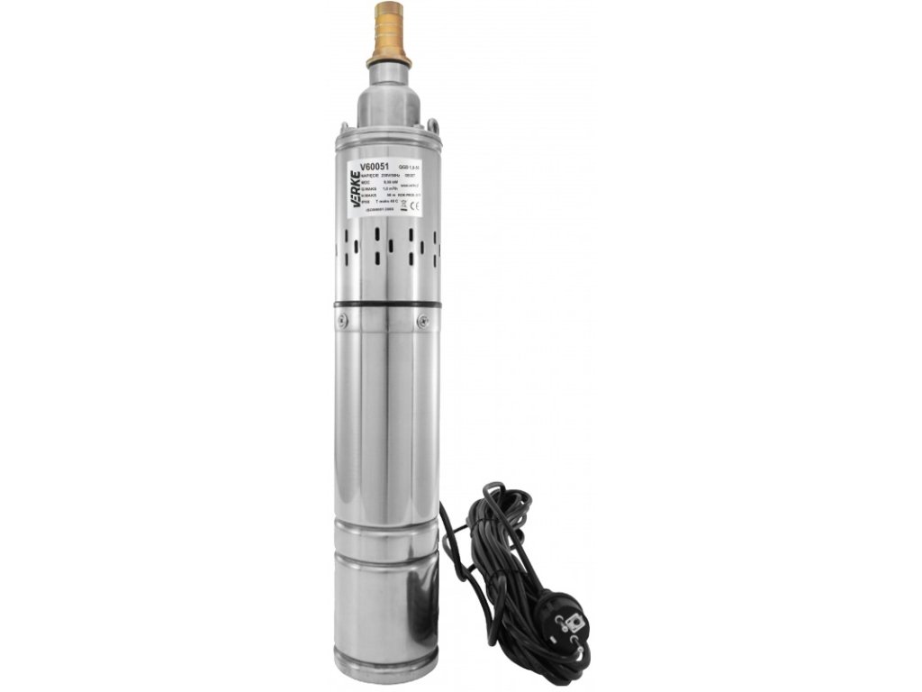 Потопяемата помпа за вода QGD 1,8-50-0,55kW VERKE V60051 е висококачествена електрическа помпа, предназначена за изпомпване на чиста вода от кладенци с минимален диаметър 110 мм. Тази серия QGD са винтови помпи и са подходящи за използване в домакинства за водоснабдяване, както и в земеделски ферми за напояване. Подходящи са за изпомпване на чиста и студена вода, съдържаща до 150 г/м³ твърди абразивни частици. Максималната температура на изпомпваната течност може да достигне до +40 °C.