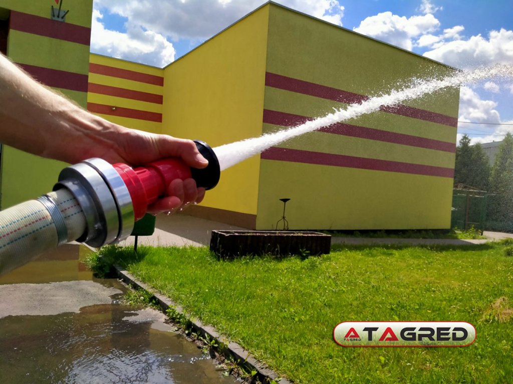 Пожарен накрайник, водно оръдие, маркуч 1 инч е професионално оборудване, което позволява плавна регулация на вида на водната струя. Контролът върху типа струя и нейната мощност се извършва лесно чрез завъртане на част от ръкохватката на накрайника. Този накрайник е изработен от издръжливи метални и пластмасови сплави и служи като крайна част на пожарни маркучи с размер 26 мм (1 инч).