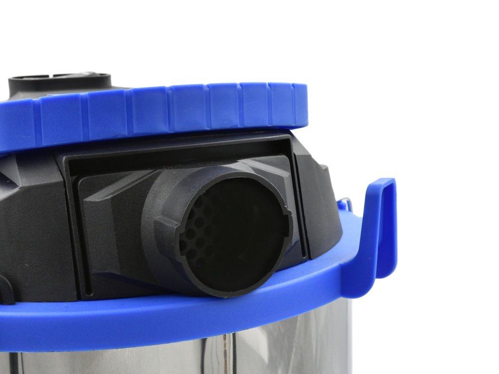 Оборудвана с практичен контакт за свързване на електрически инструменти с максимална мощност до 2000W. Трипозиционният прекъсвач позволява лесно превключване между два работни режима, а контейнерът с обем 25 литра е изработен от здрава неръждаема стомана. Благодарение на функцията за издухване, можете лесно да премахнете замърсявания от труднодостъпни места.