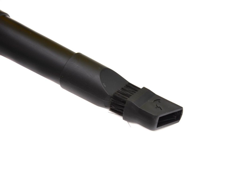 В оборудването е включена широка подова приставка с размери 265 x 50 мм с пластмасови нишки, предназначена за сухо и мокро почистване.