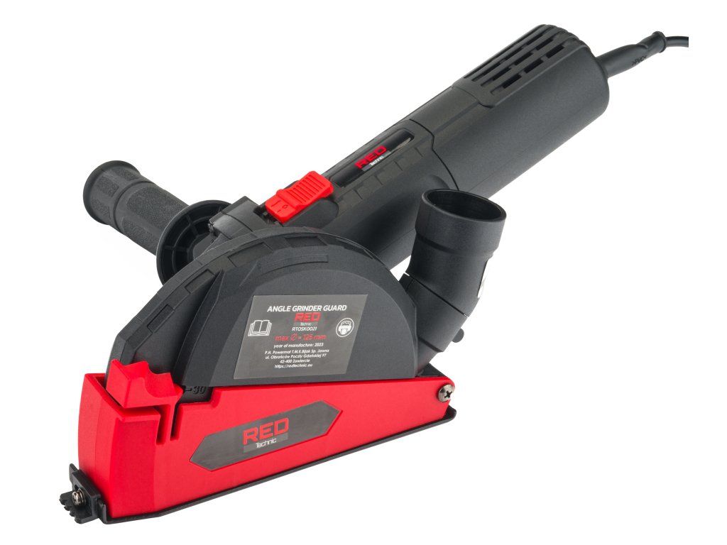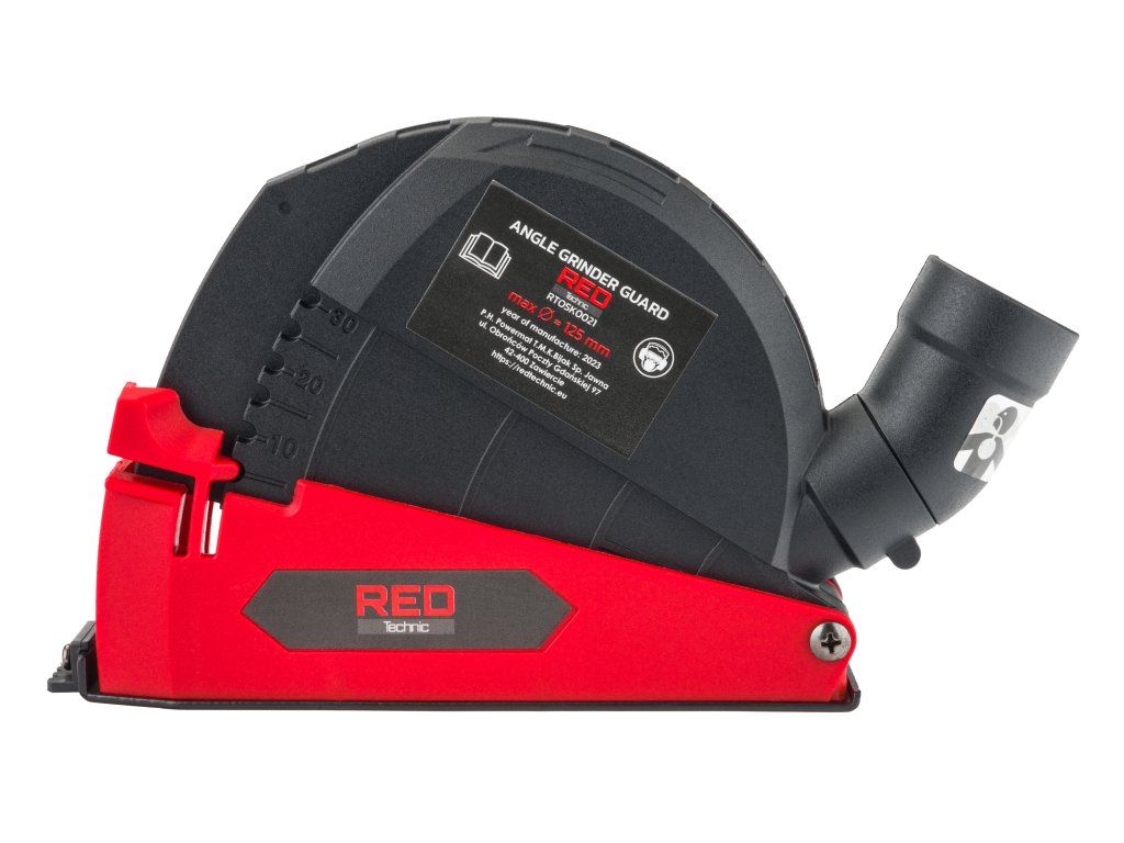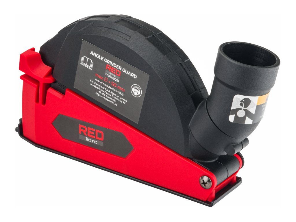 Компактен защитно-засмукващ капак от марката RED TECHNIC, специално проектиран за употреба с ъглошлайфи от различни марки. Благодарение на универсалния адаптер е съвместим с повечето прахосмукачки и е подходящ за дискове с диаметър 115 - 125 мм.