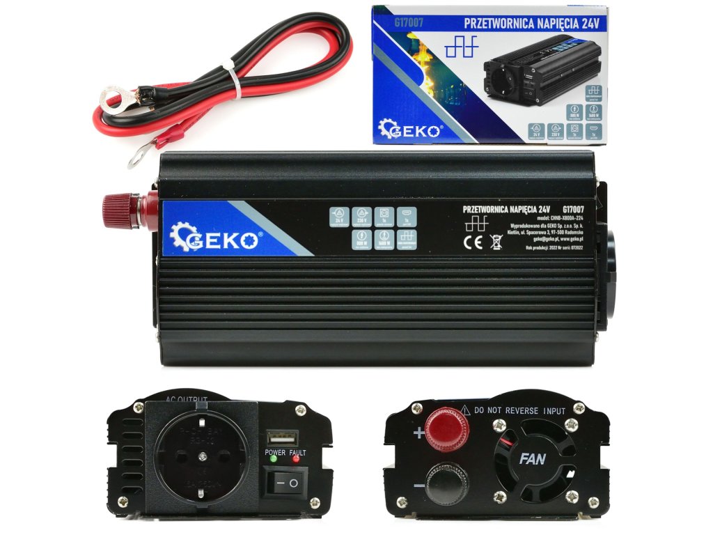 Преобразувател на напрежение 24V/230V 800/1600W G17007 е незаменим продукт за всеки, който прекарва време на път. Този практичен инвертор преобразува прав ток 24V от акумулатори или автомобилни инсталации в променлив ток 230V. По този начин можете да захранвате различни електронни устройства, които изискват напрежение 230V. Устройството осигурява постоянна мощност от 800W и максимална краткотрайна мощност до 1600W.